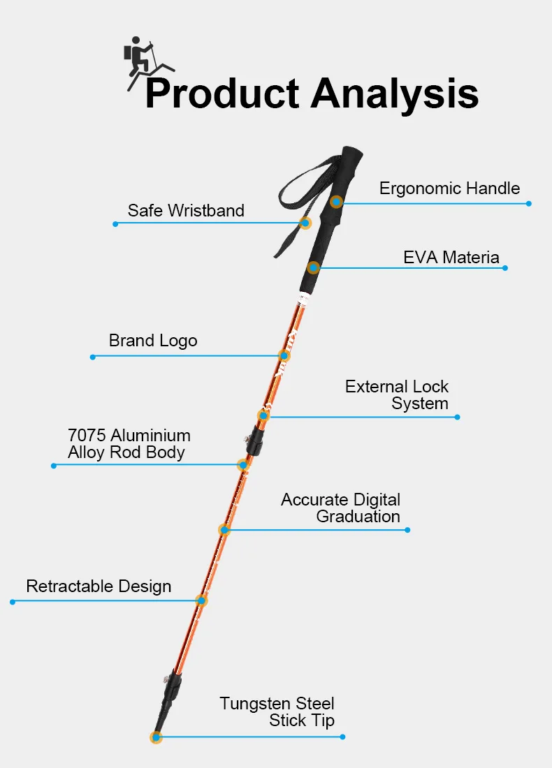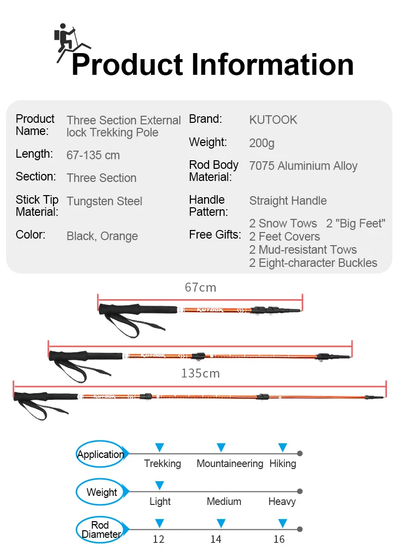 Название продукта: kutaked трехсекционный Внешний замок Треккинговый Полюс