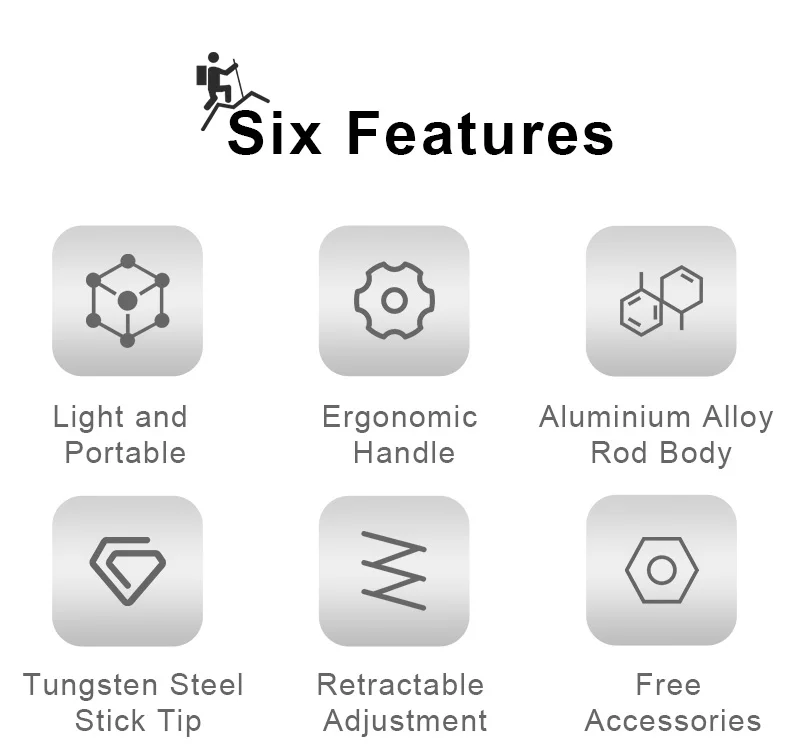 Легкий и портативный/эргономичная ручка/корпус стержня из алюминиевого сплава/наконечник из вольфрамовой стали/Выдвижная регулировка/Бесплатные аксессуары