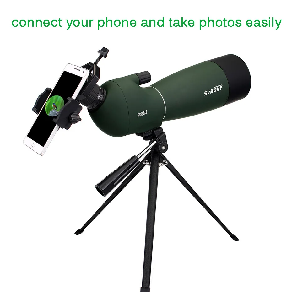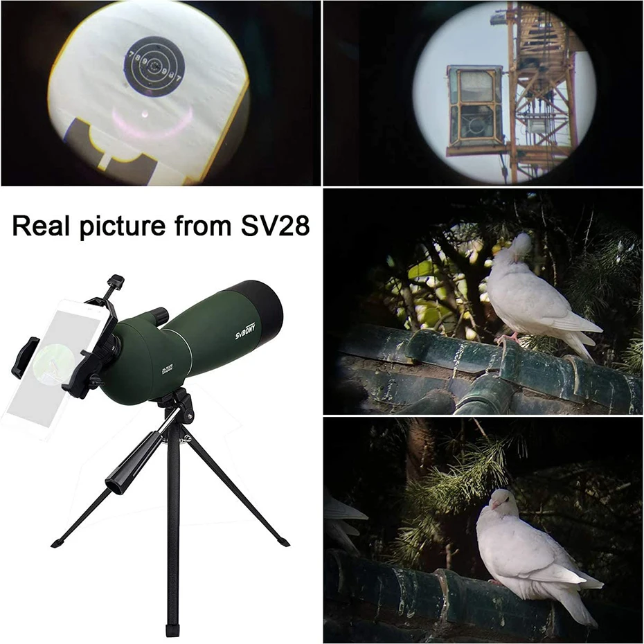 25-75x зум: Зрительная труба SV28 легко фокусируется и изменяет увеличение, легко настраивается при взгляде на птиц и пейзажи. Отличный зрительный прицел для начинающих и начинающих.