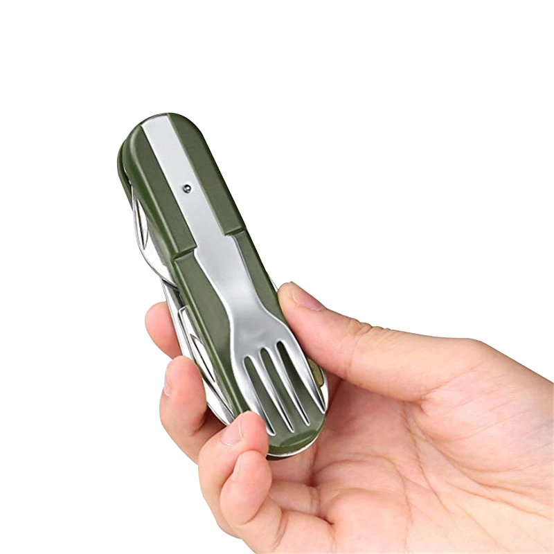 Дорожный набор из нержавеющей стали, портативный армейский зеленый складной походный нож для пикника, столовые приборы, вилка, ложка, открывалка для бутылок, посуда
