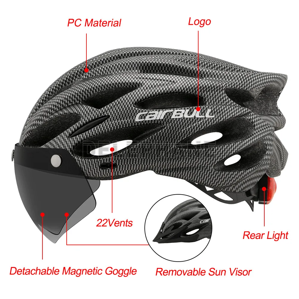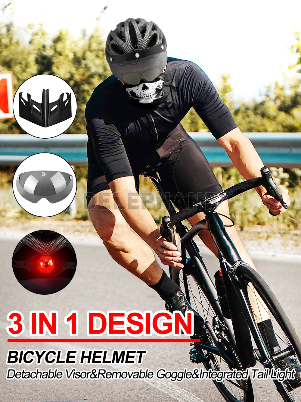 - 3 in 1 Design:Detachable Magnetic Goggle + Removable Sun Visor + Integrated Rearlight