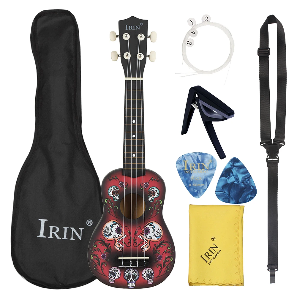 IRIN 21 дюймов набор Гавайских гитары укулеле 4 струны Гавайская Гитара Череп Укулеле сопрано мини гитара с Gig Bag Музыкальные инструменты подарки
