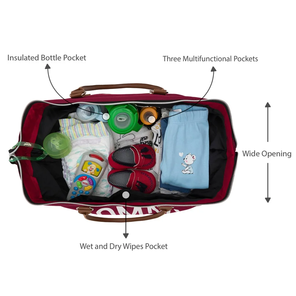Mommy Bag может проглотить все, что вы бросите на него с его большим отверстием, смоделированным после сумки доктора. Две прочные молнии сохраняют содержимое в безопасности и сохранности; С дополнительным широким отверстием вы можете быстро получить доступ к сумке для подгузников. Кроме того, вы никогда не теряете ключи и внутренний карман кошелька для мамы.