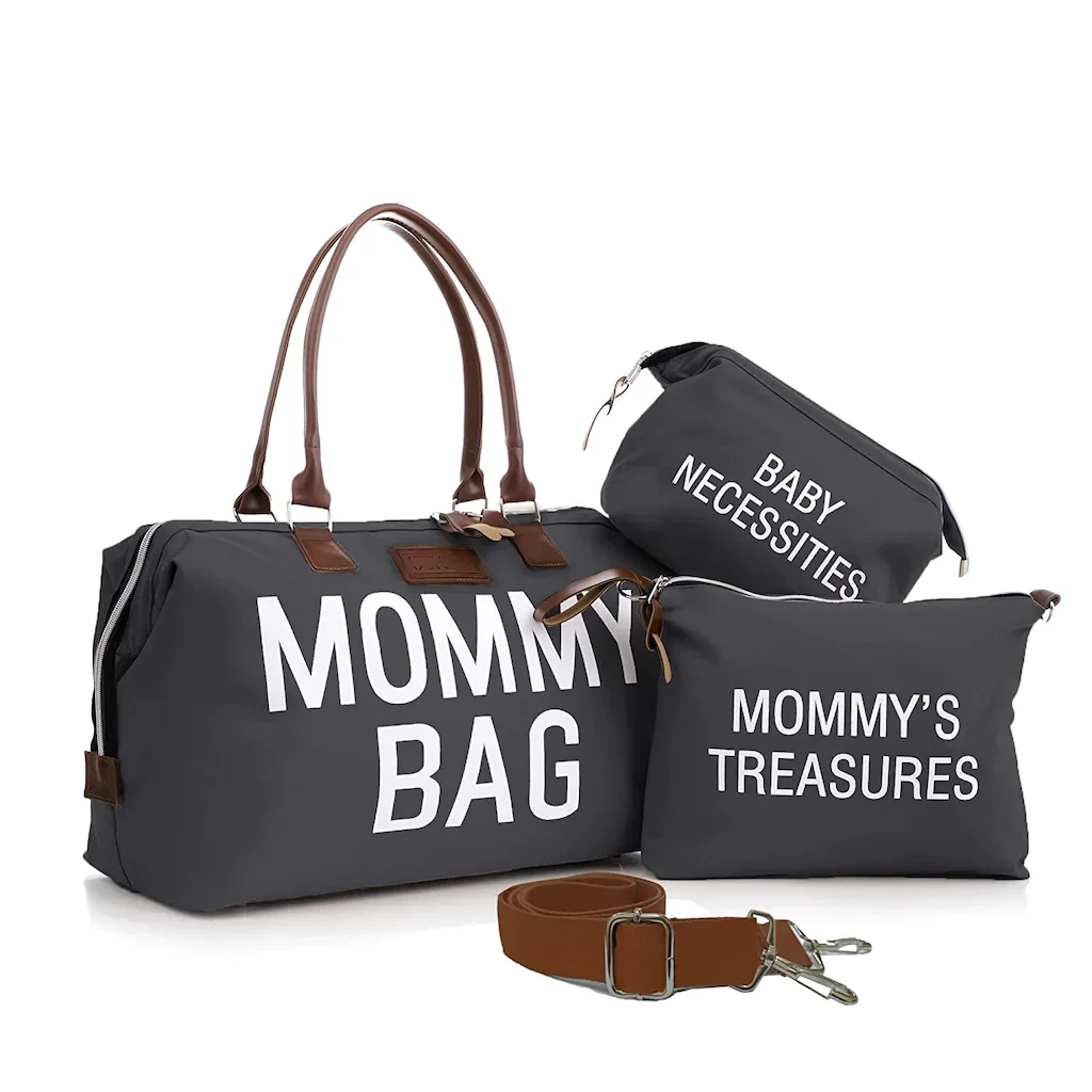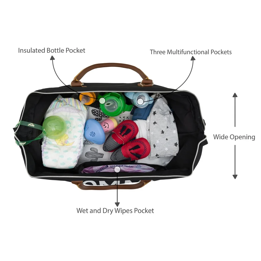 Mommy bag-это уникальная практичная сумка для подгузников, которую вы мгновенно полюбите. Вы можете использовать больше; Больничные мешки для родов и родов, дорожная сумка, новые подарки для мамы, подарки для детского душа, новогодние подарки для жены или беременных и т. д. Кроме того, от большого стилизованного шрифта до умных кожаных ручек, эта сумка-даффл отлично смотрится в шикарном стиле.