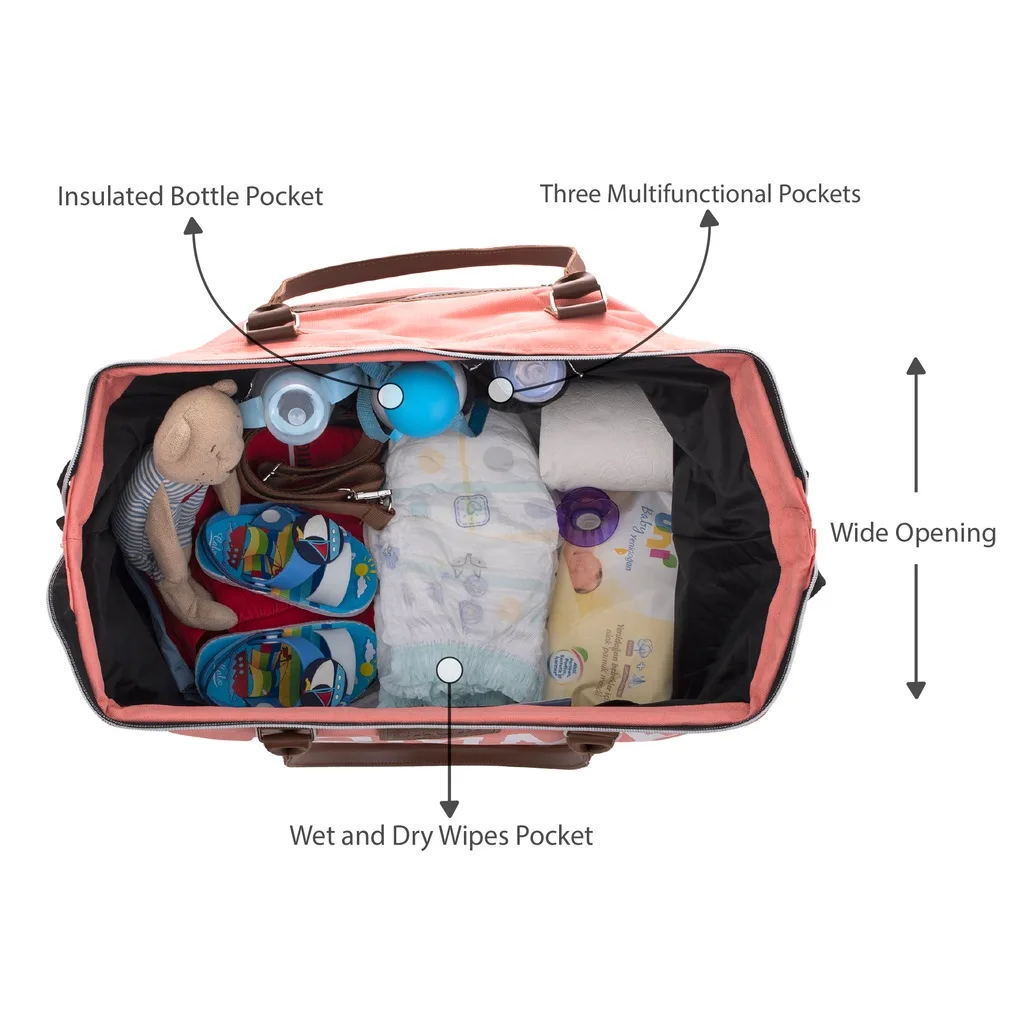 Достаточно вместительный, чтобы держать большинство вещей для маленьких мальчиков и девочек идеально организованными и компактными. Сумка для детских подгузников имеет 3 изолированных кармана для бутылок, которые могут держать большую часть широкой шеи или высоких бутылок для молока и воды (от 5 до 11 унций); Вы можете взять одежду для малышей и мам, подгузники для новорожденных, полотенца, сумочки и т. Д.