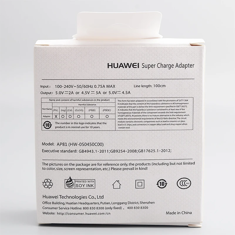 Оригинальное сетевое зарядное устройство для смартфона Huawei, USB Type-C.