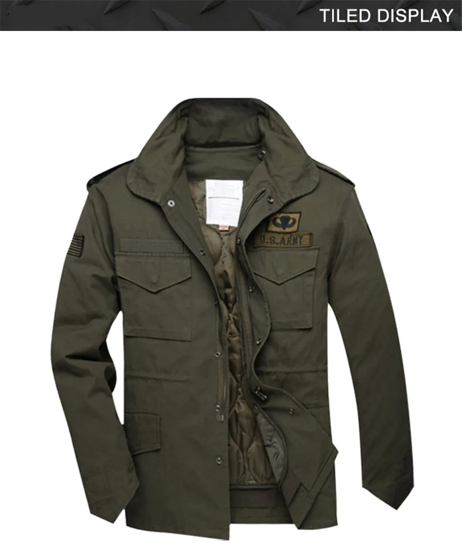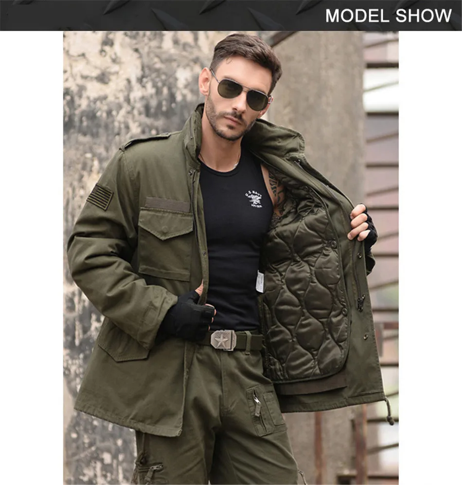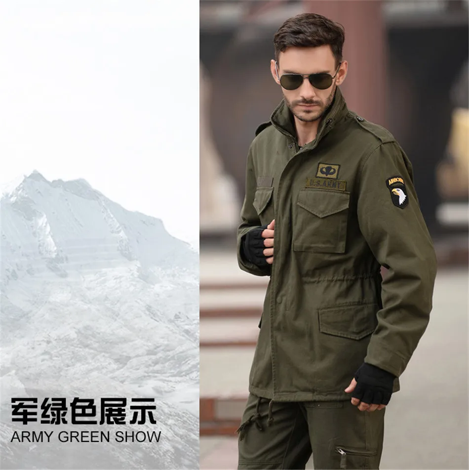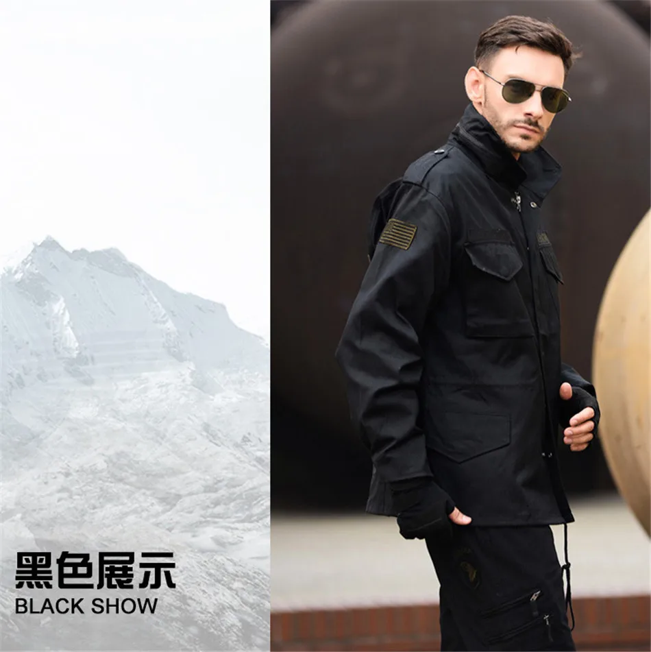 Мужская куртка в стиле милитари, Толстая теплая армейская зеленая военная форма, черная ветровка M65 со съемной подкладкой, Осень-зима
