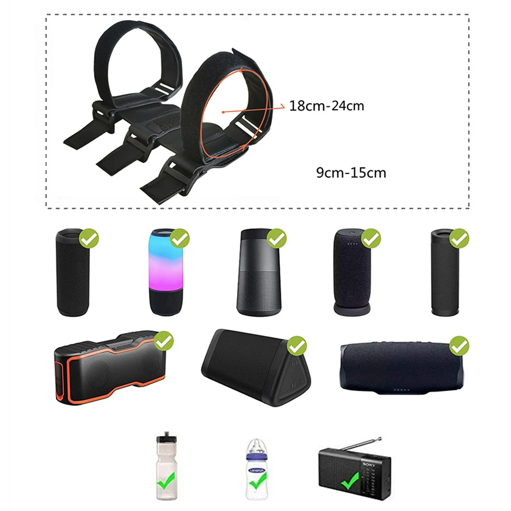 Применимые случаи: подходит для большинства беспроводные колонки между 7,5» 11,5» окружности. Вы также можете повесить некоторые аксессуары, такие как напитки, бутылки для воды, аксессуары для гольфа, инструменты, радио, одежда и т. Д. И держать различные предметы. Не только для динамиков, но и для бутылок с водой и ремонтных комплектов.