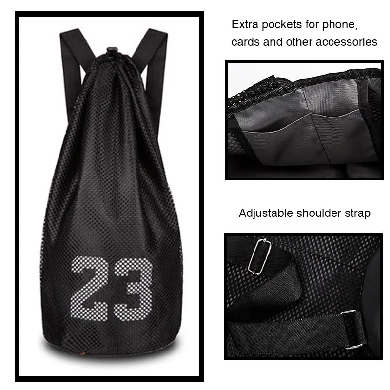 Сверхпрочная ткань с сетчатой вентиляционной тканью, не выцветает, сумка для переноски рюкзака, большая вместимость для переноски одного мяча, а также пара обуви, если вам нужно, размер продукта диаметром 10,24 "x" H.