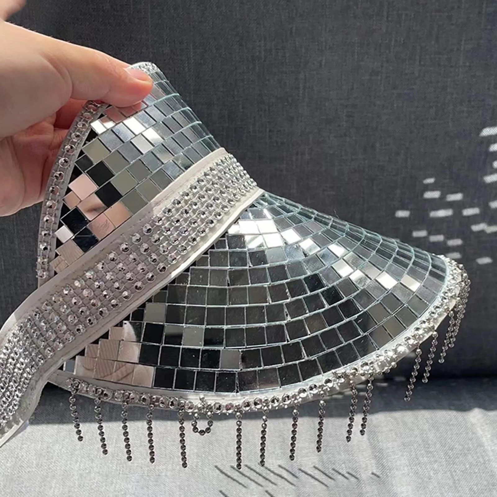 Блестящие зеркальные Стеклянные Диско-шляпы были тщательно подготовлены и модифицированы для добавления зеркального стекла с использованием только идеальных материалов. Сделайте их блестящими в огнях.