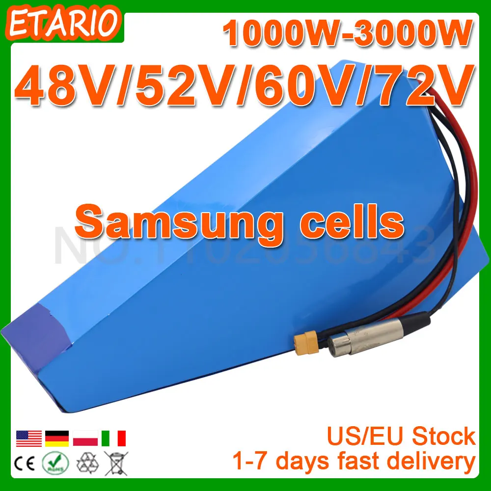 18650, фара для электровелосипеда в Батарея 48V 52V 20Ah 30Ah 35AH 40AH 60V 30Ah 72 в 25Ah Треугольники Батарея пакет для Bafang 1500 Вт 2000 Вт 2500 Вт 3000 Вт мотор