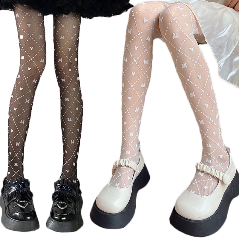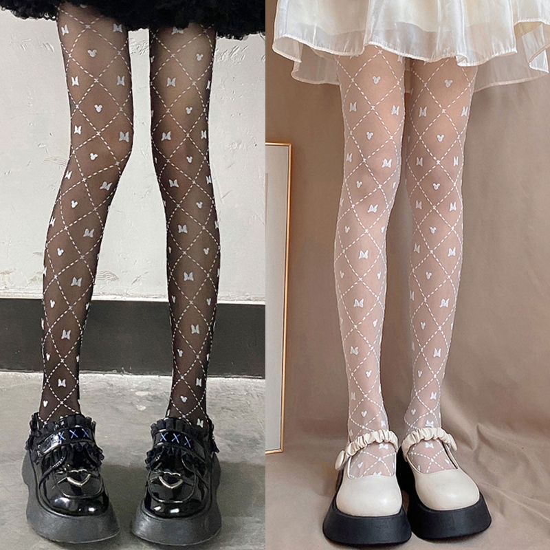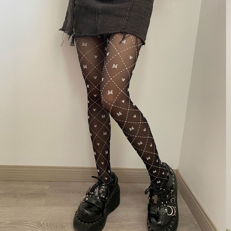 Готический панк стиль, в горошек, в клетку, с бантом и сердцем, жаккардовые узорные татуировки колготки.