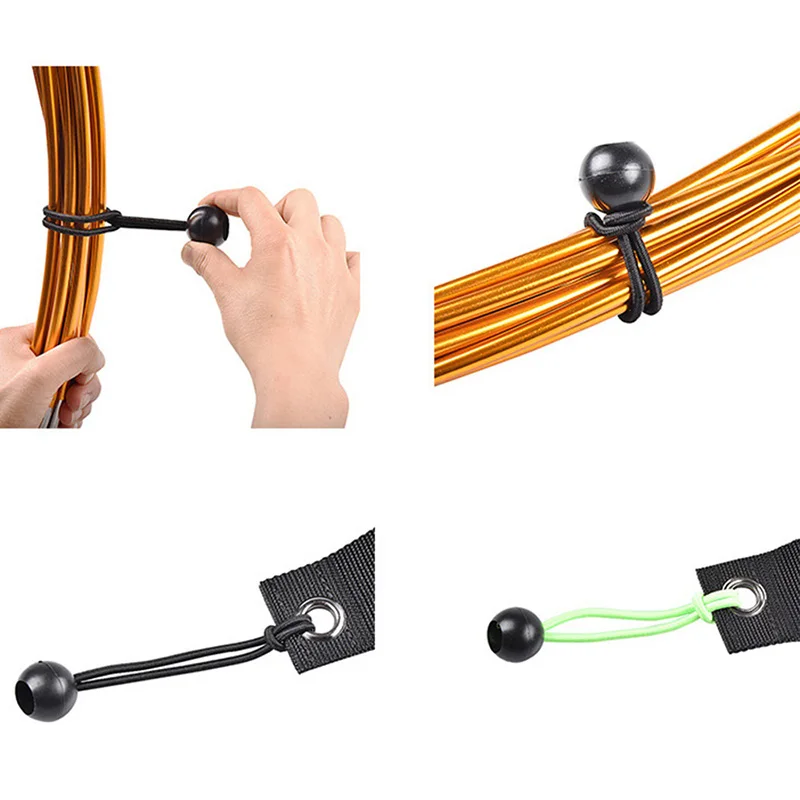 * 10 шт.ПластикМяч банджи шнур галстук вниз ремень навес палатки Аксессуары * 100% новый и высокое качество * Подходит для фиксации предметов домашнего обихода, автомобильных принадлежностей, навесов, брезента, солнцезащитных теней, спальных мешков и т. д. * Размер (прибл.): Длина банджи: 13 см Мяч для открытия пор: 1,5 см Мяч длина: 2,7 см * Одиночный вес: 11,5 г (приблизительно) * Материал: эластичный Оксфорд + пластик * Дополнительный цвет: черный/зеленый (как показано на фотографии) * Количество: 10 шт.