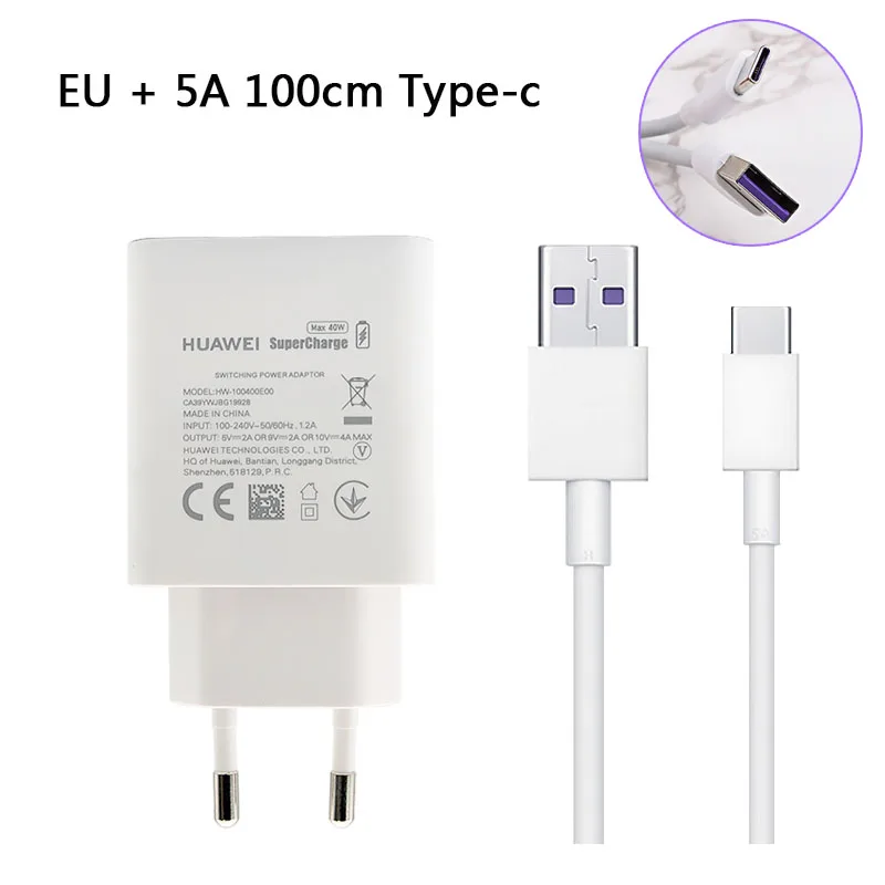 EU Huawei Original Charger 40W Fast Charger Adapter 5A Type C Cable For Honor 10 Magic P20 P30 pro p40 pro mate 30