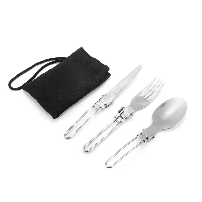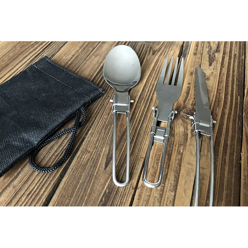 Вес: около 85 г (нож 19 г вилка 25 г ложка 33 г черная нейлоновая сумка 9 г)