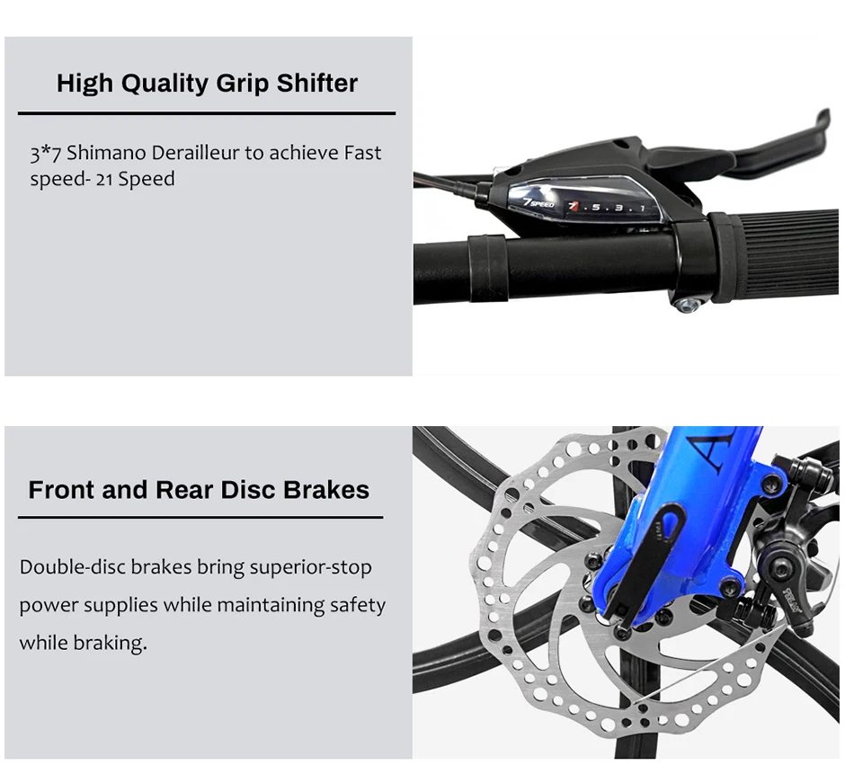 Передние и задние дисковые тормоза: Двойные дисковые тормоза улучшают эффективность торможения, чтобы вы были в безопасности во время торможения.