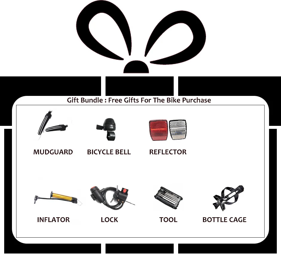Подарок Bndle: Велосипедное Надувное устройство, велосипедный замок, инструмент для установки, крыло, велосипедное кольцо.