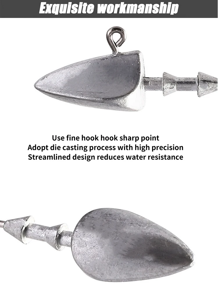 1. Свинцовая головка принимает треугольный обтекаемый дизайн, чтобы уменьшить сопротивление движения вперед в воде;