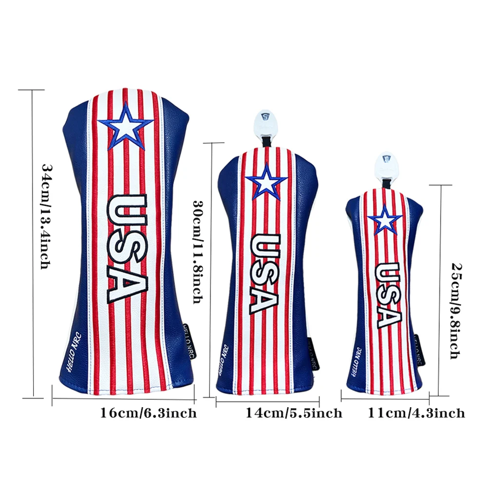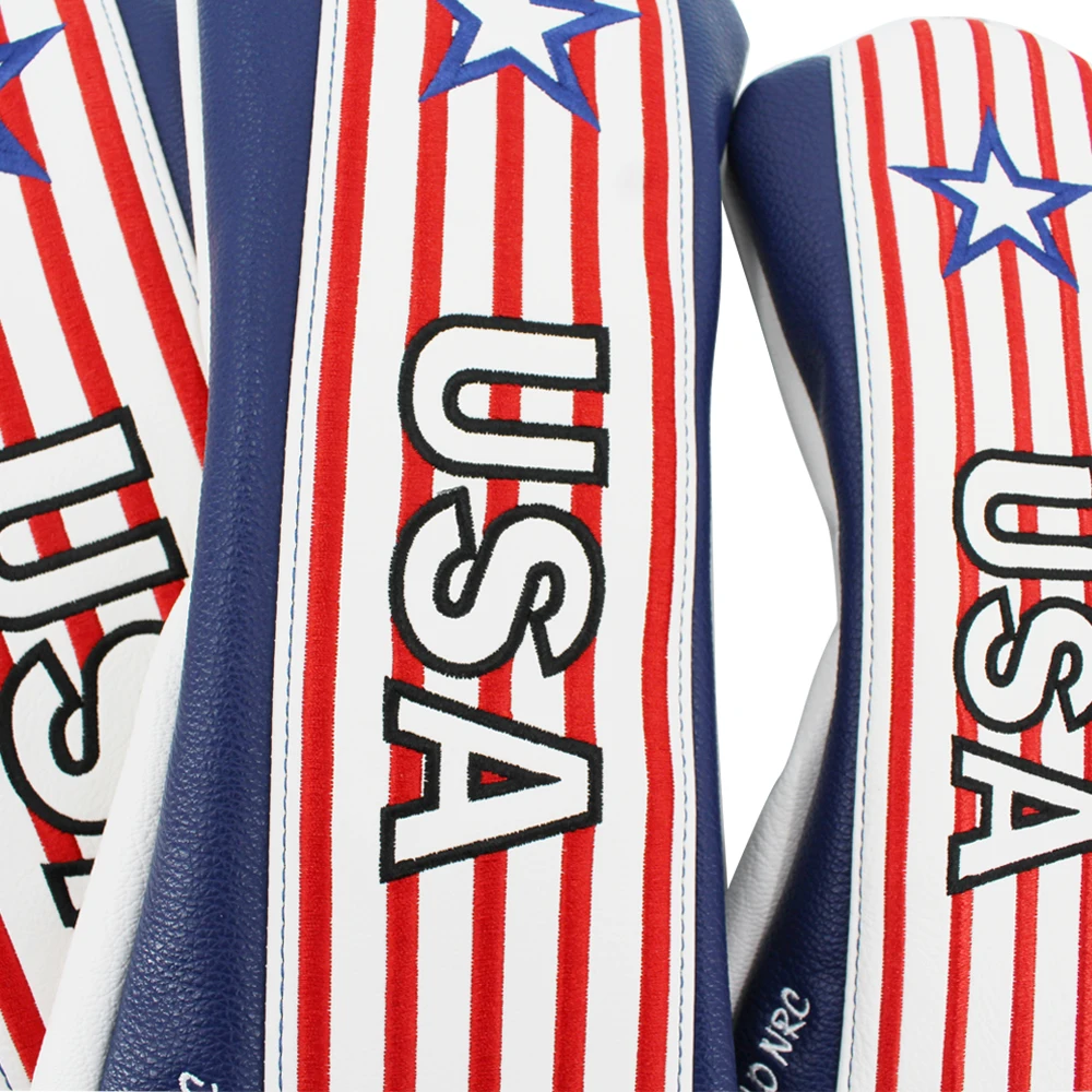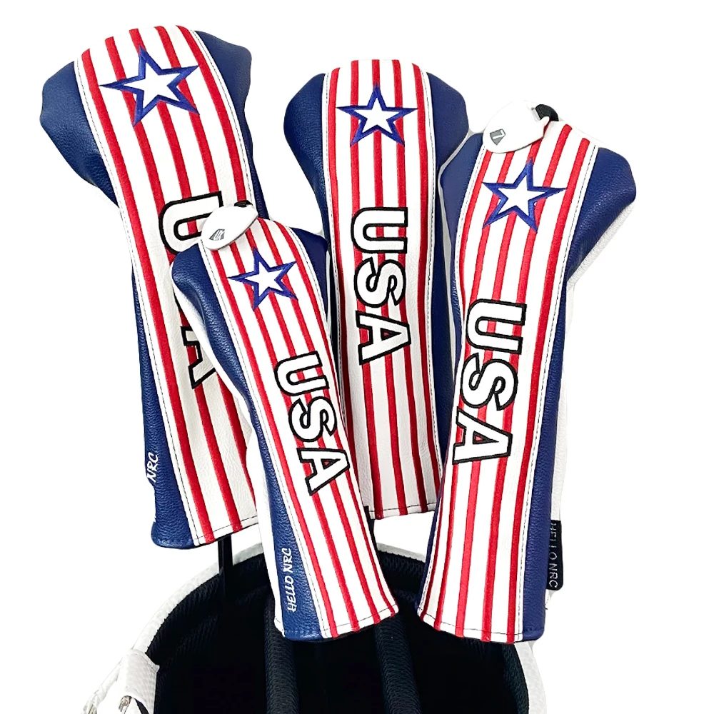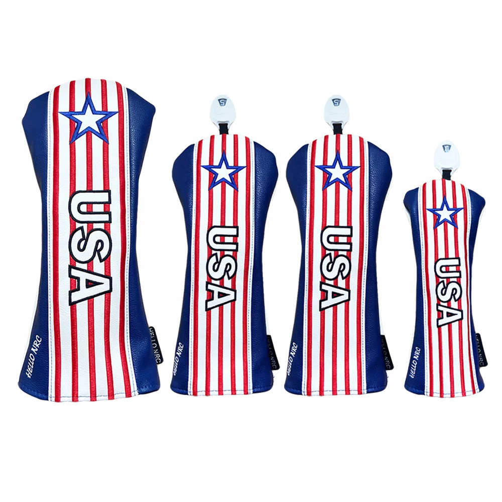 Чехол для головы для гольфа в полоску США, чехол для головы для клюшки для гольфа, Гибридный чехол для водителя, защитный чехол из искусственной кожи, деревянные Чехлы, номерная бирка