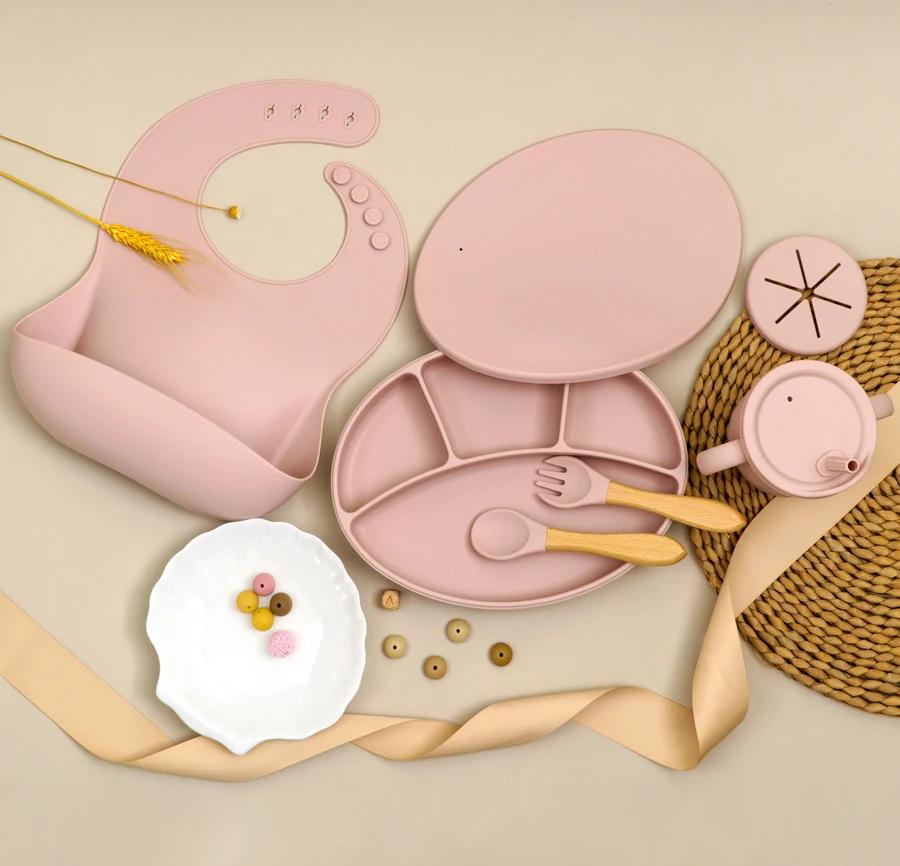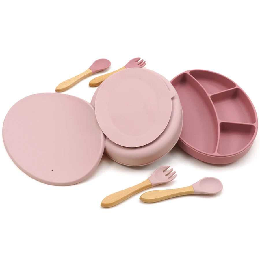 1 Набор детской посуды, силиконовая присоска, тарелка для кормления без бисфенола А с крышкой и ручкой, ложка, подарки на детский душ