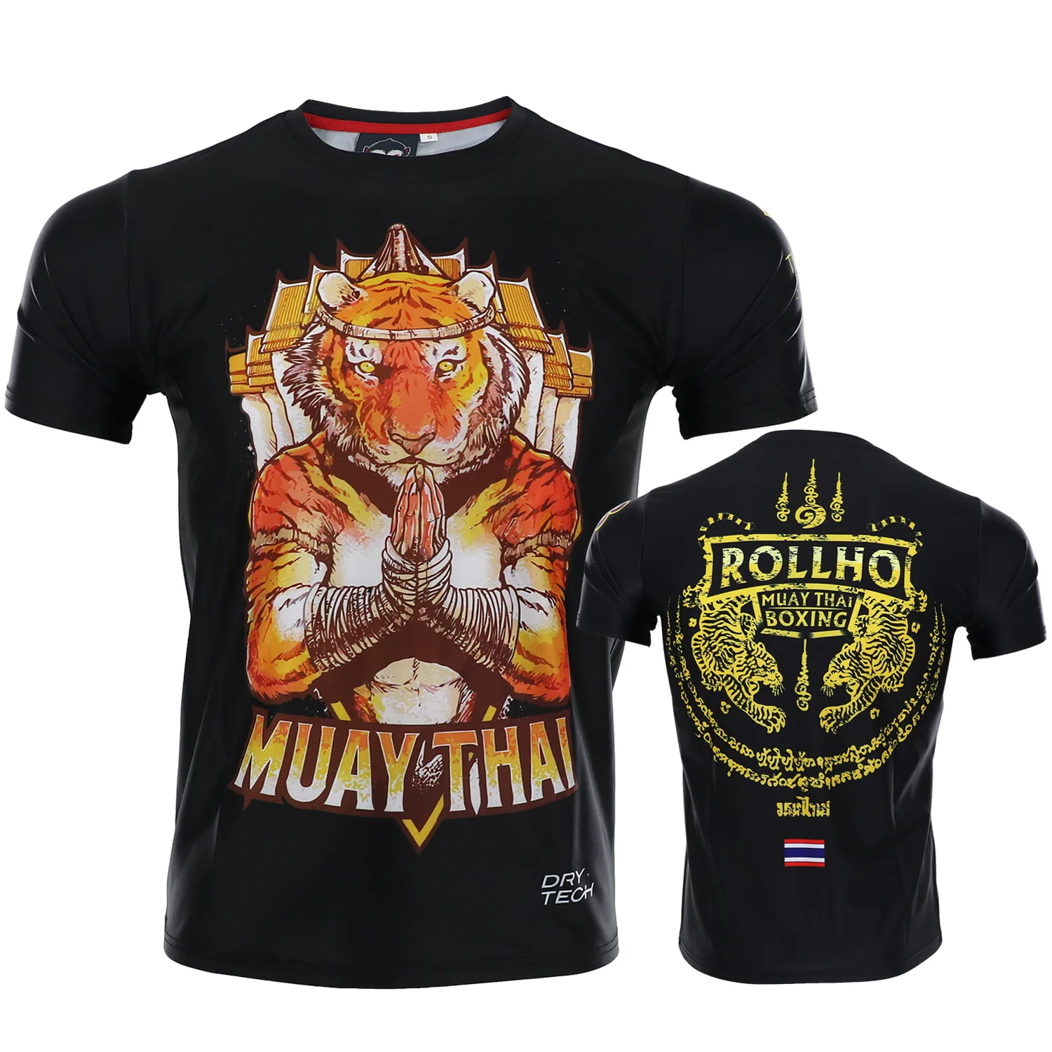 Tiger Muay Thai Boxing Training T-Shirt Quick Dry Rashguard MMA Jersey Black White Men Women BJJ Kickboxing Fight Tee Shirts