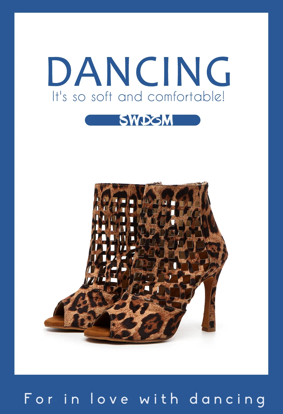 SWDZM/женские танцевальные туфли большого размера; Бальные туфли для латинских танцев, танго, джаза; Танцевальные ботильоны с открытым носком; Черная танцевальная обувь с мягкой подошвой