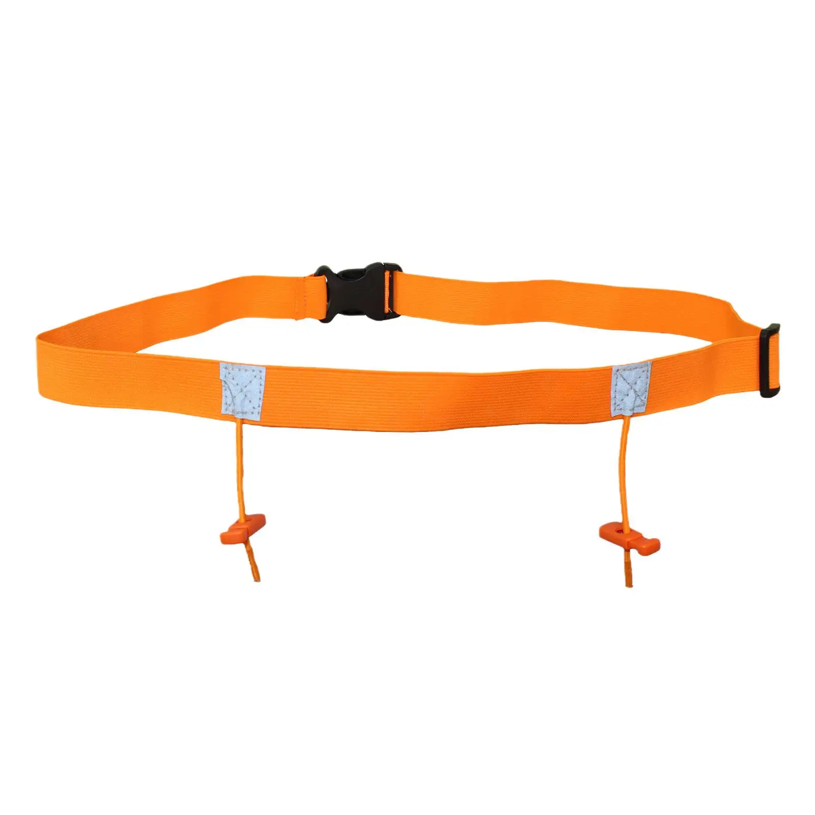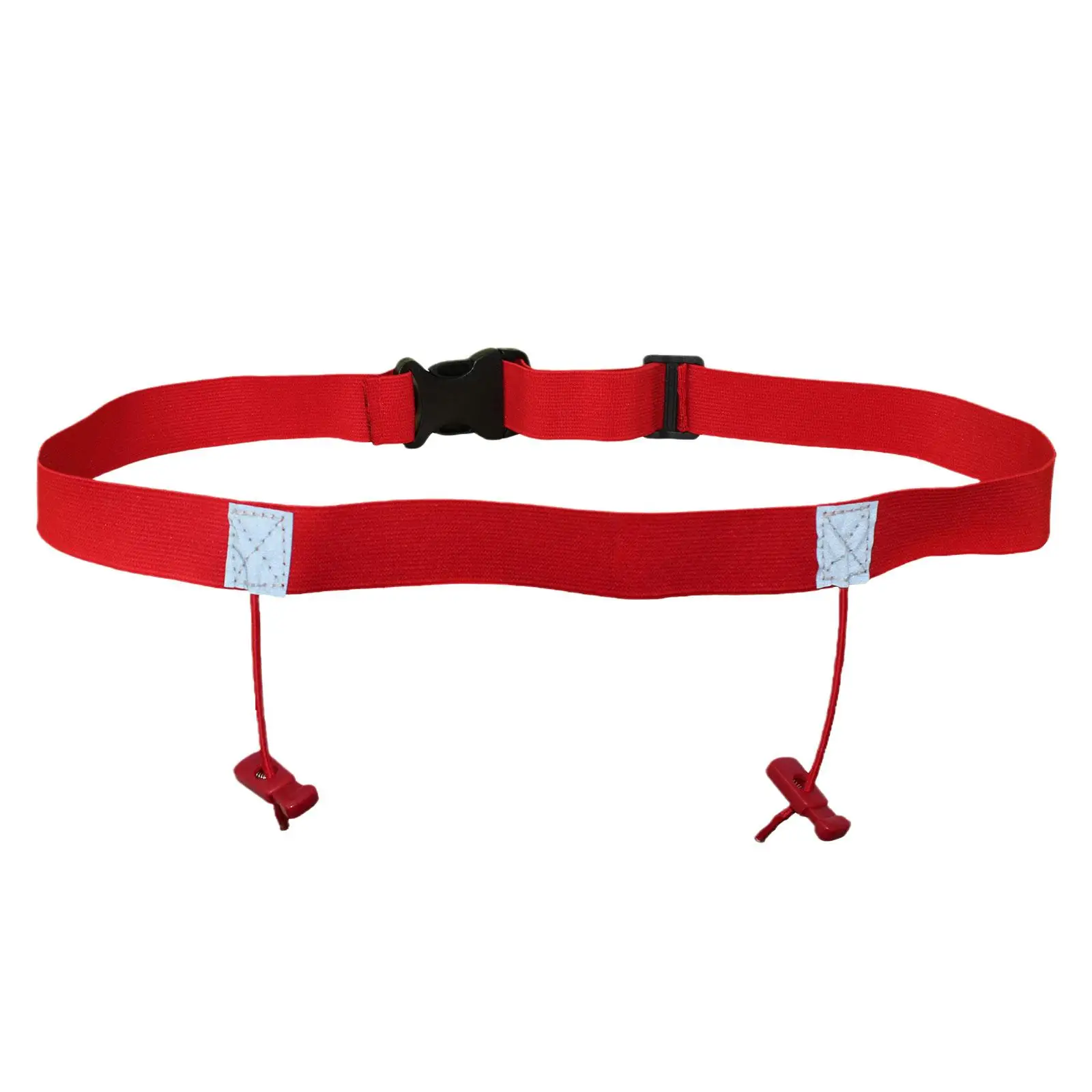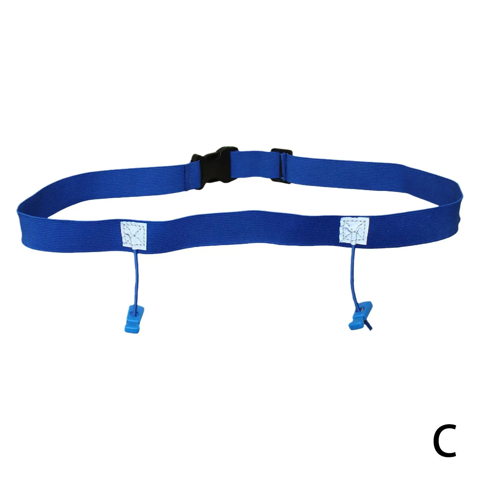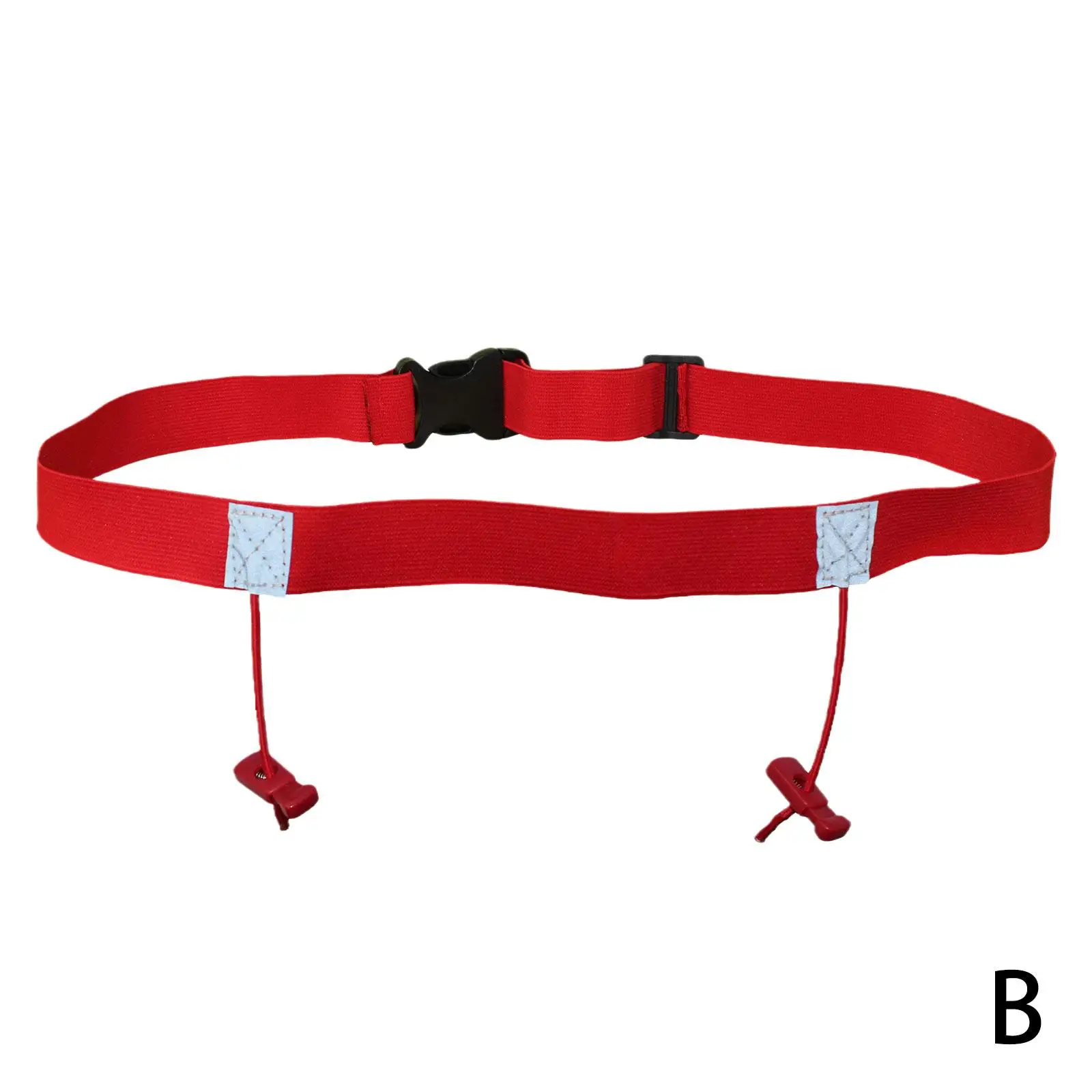 Высокоэластичный пояс со встроенной экологически чистой латексной нитью и двумя регулируемыми местами для подвешивания номерного знака.