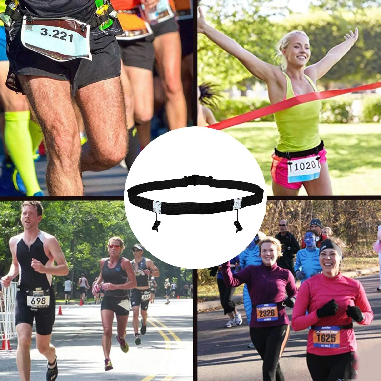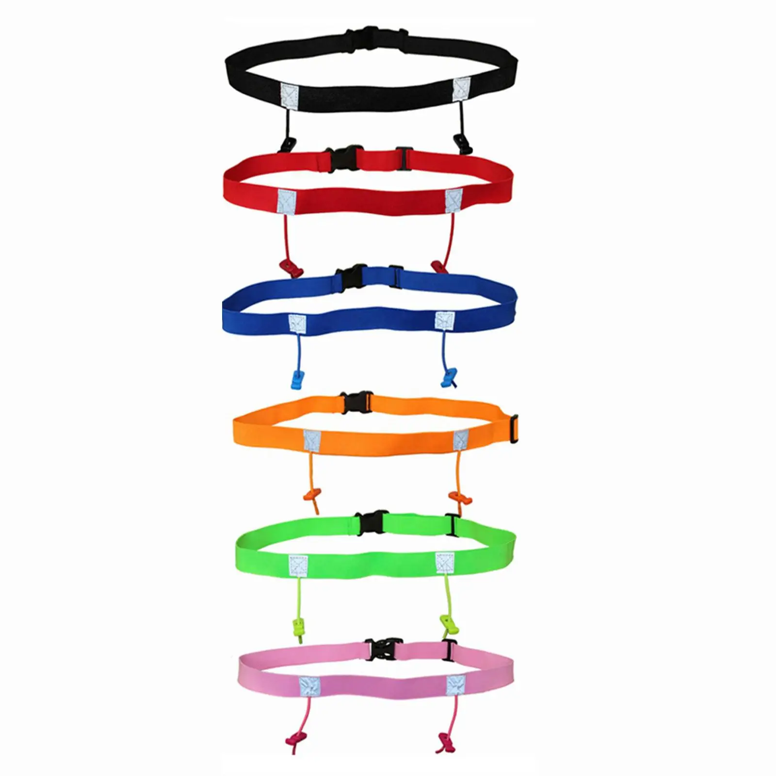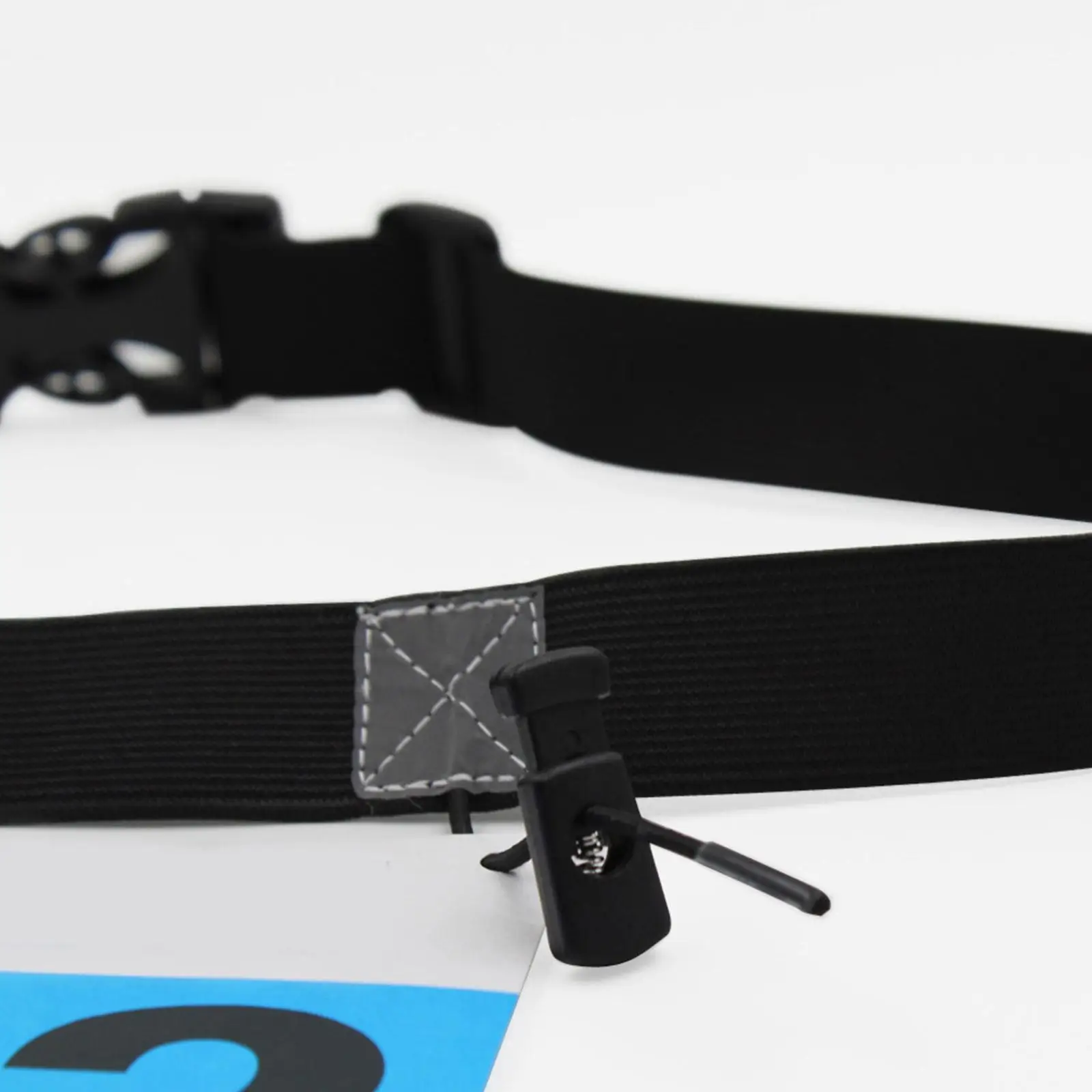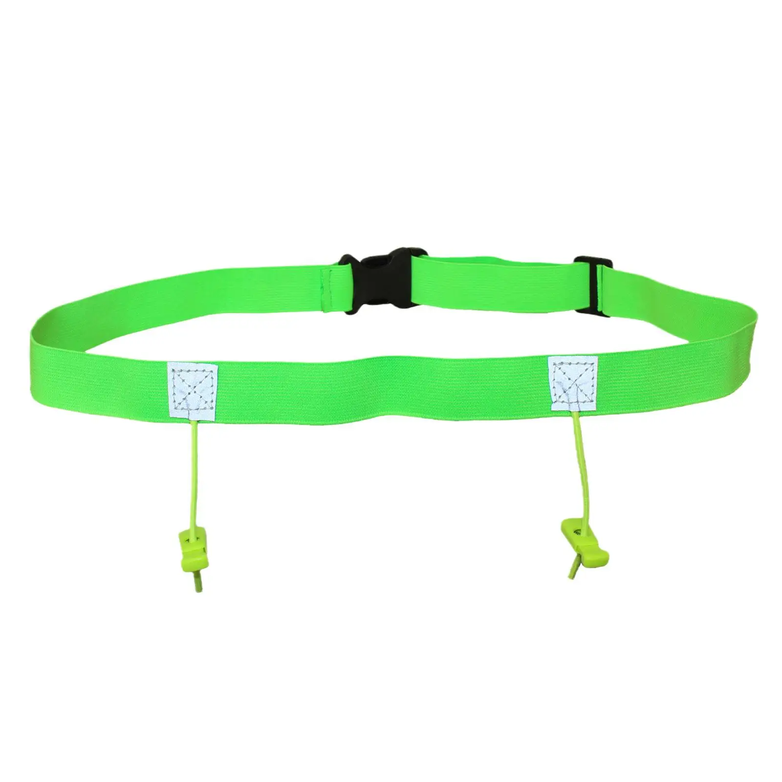 Высокоэластичный пояс со встроенной экологически чистой латексной нитью и двумя регулируемыми местами для подвешивания номерного знака.