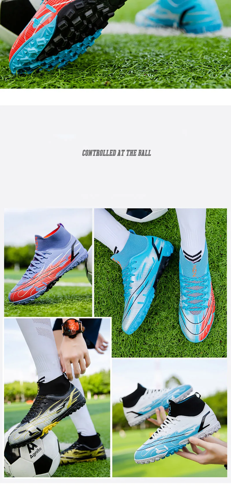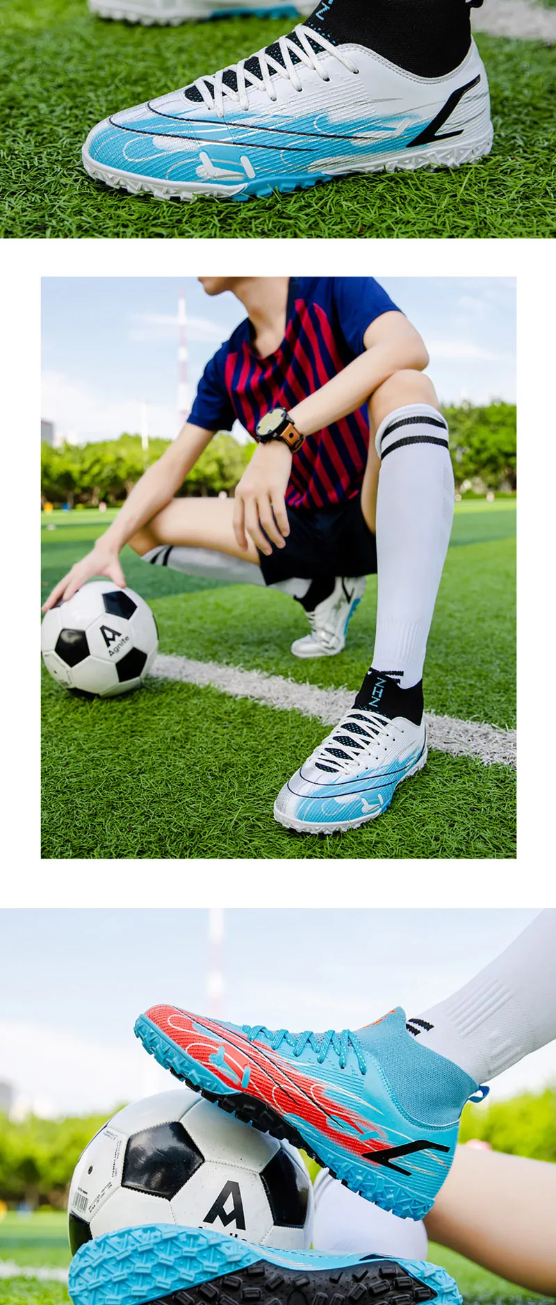 Новая футбольная обувь, высокие ботильоны, TF, высокое качество, дышащие, для спорта на открытом воздухе, футбольные тренировочные ботинки, подходят для мужчин и женщин, детские кроссовки