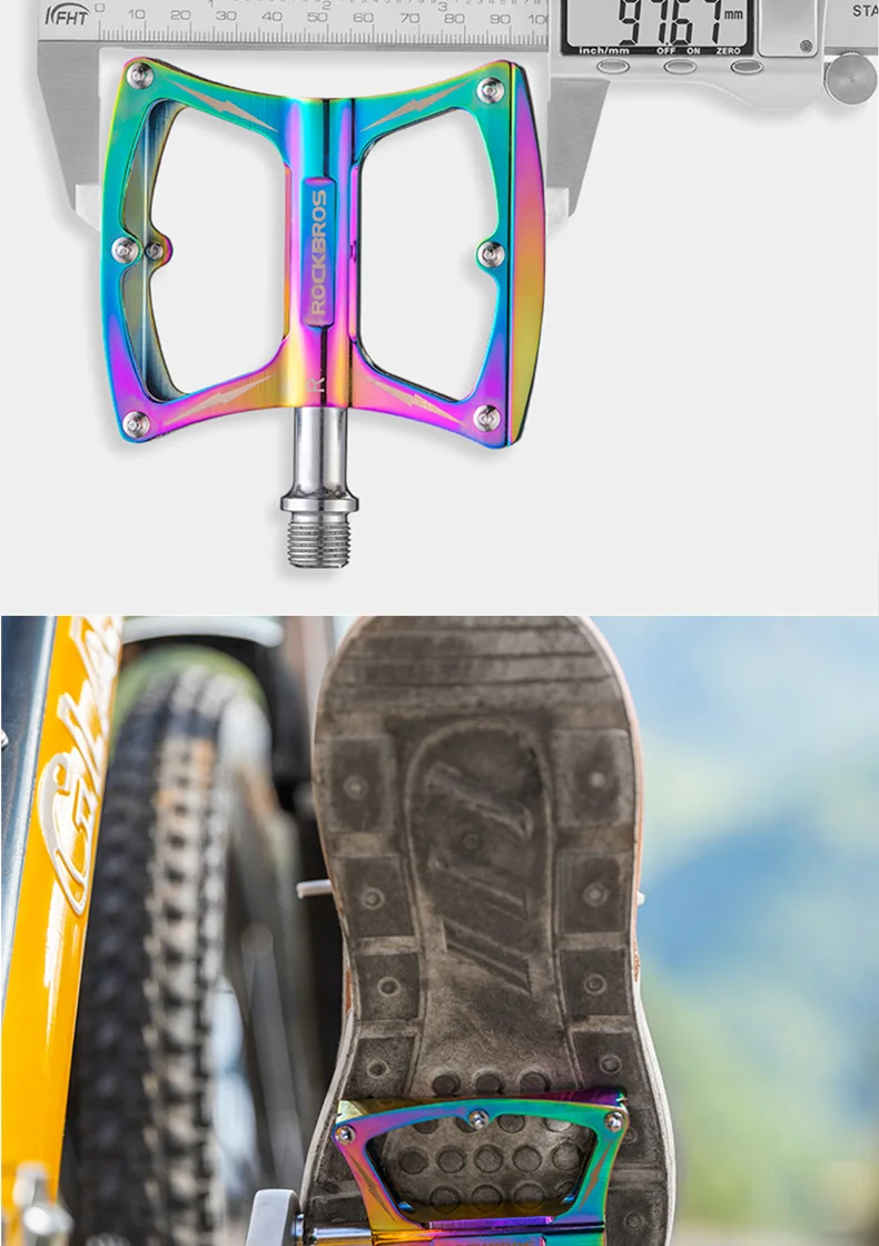 Russian translation: Педали ROCKBROS MTB легкого алюминиевого сплава с креплениями, герметичными подшипниками и плоским платформенным дизайном - аксессуары для велосипеда для BMX и шоссейного катания.