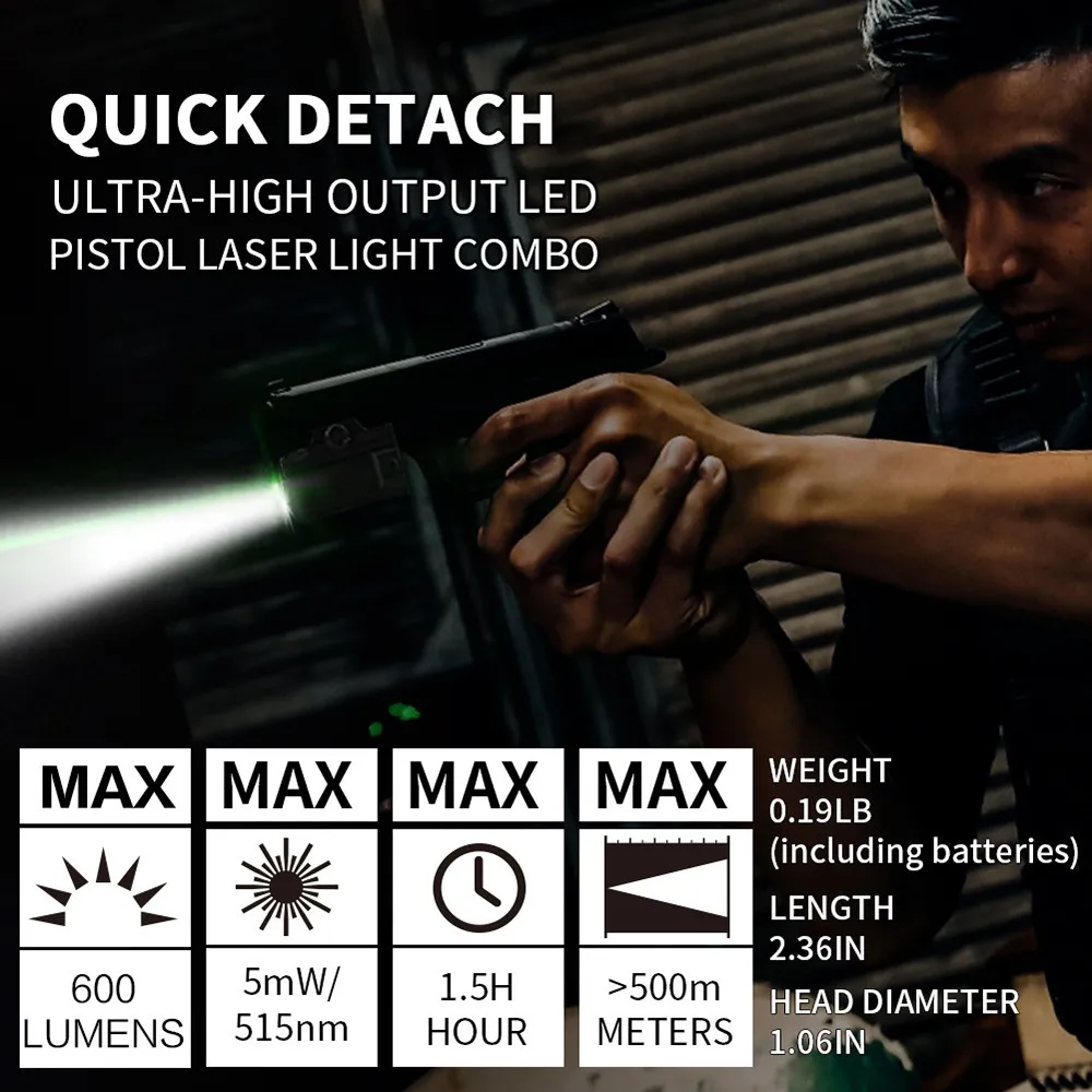 3. 【Стробоскоп и светильник вспышки 】 - Ambidextrous constant / strobe, вы можете использовать светильник пистолета для определения или дезориентирования сфокусированной цели.