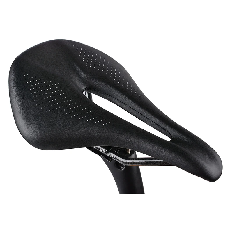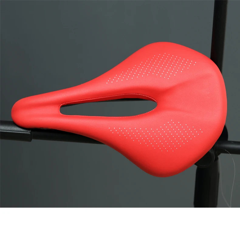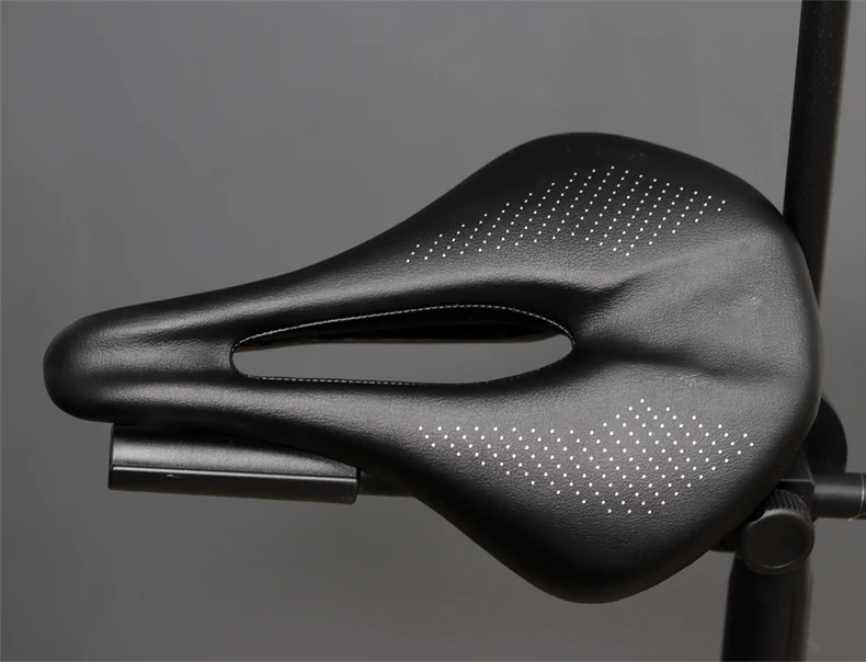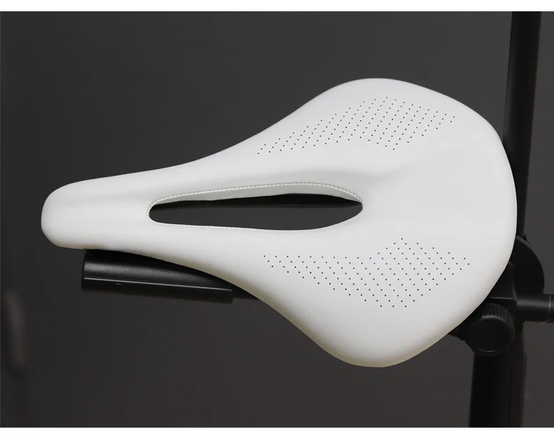 Структура из углеродного волокна, водонепроницаемая кожаная поверхность, мягкая и эластичная губка с эффектом памяти, полый и дышащий дизайн, делает езду более удобной.