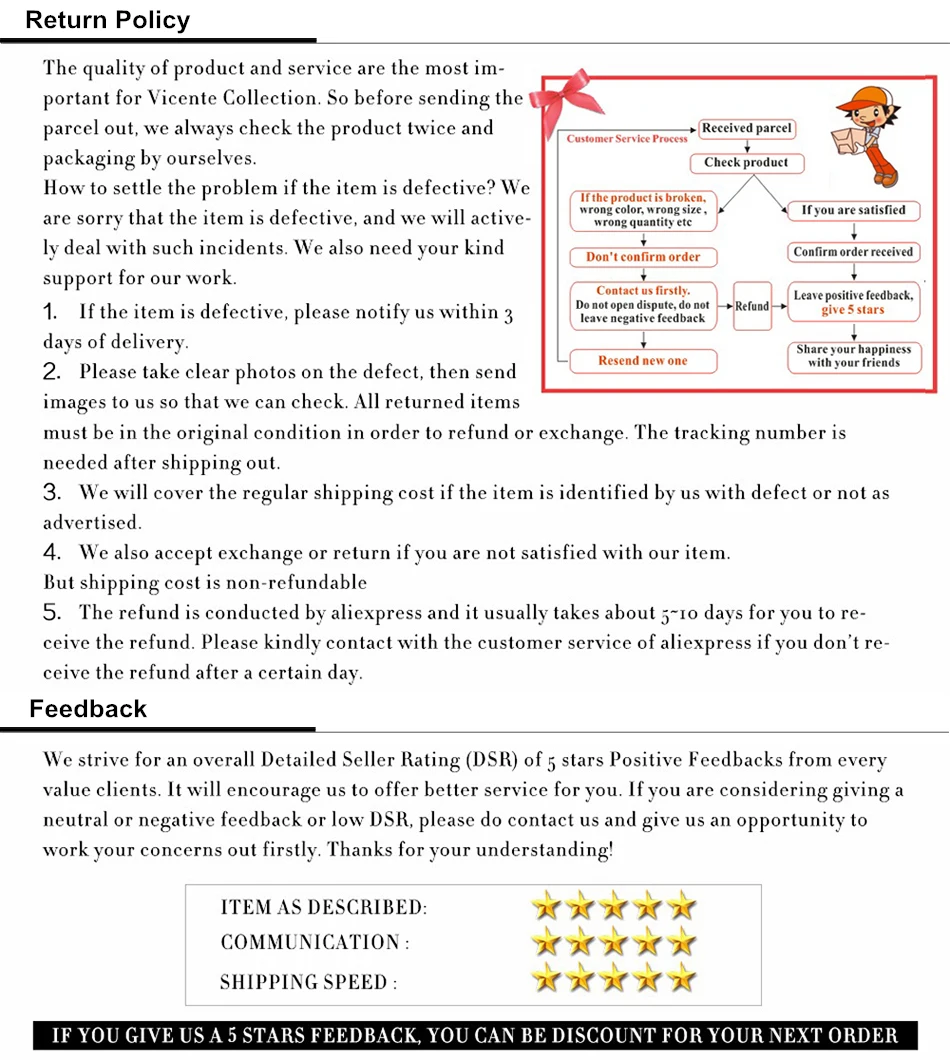 4. Пожалуйста, свяжитесь с нами для уточнения, если вы не согласны с любыми условиями или условиями, указанными на этой странице перед покупкой. Покупка на Aliexpress-это взаимно связывающий контракт. Спасибо.