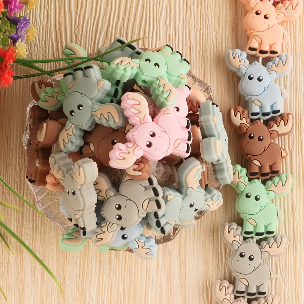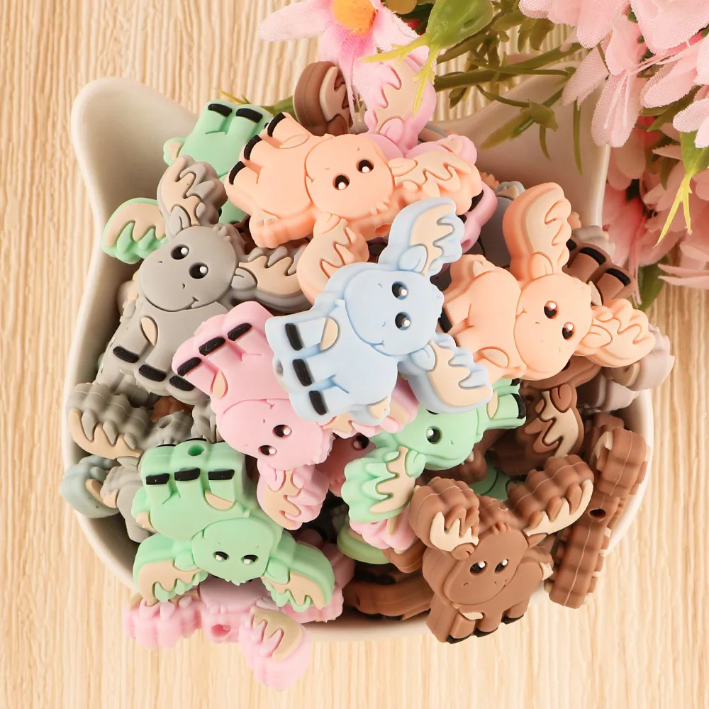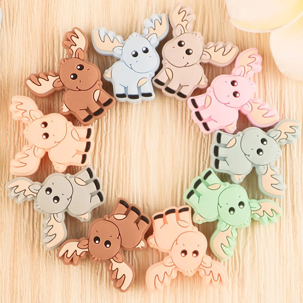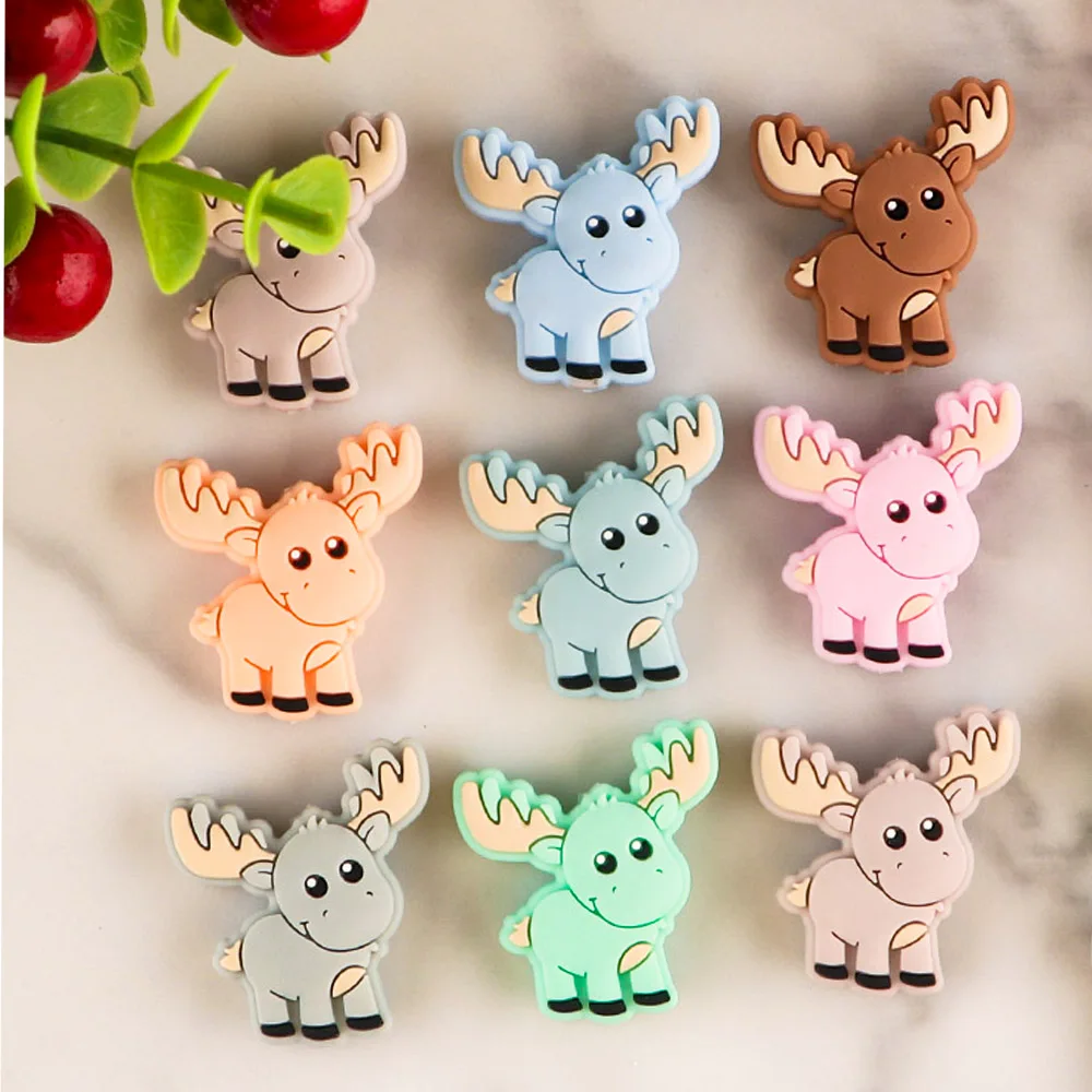 Kovict 10 шт. Детские Силиконовые бусы Новый мини олень Рождественский подарок пищевой кулон DIY соски цепи аксессуары BabyToys