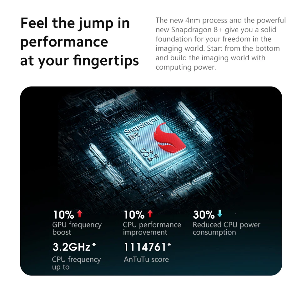 * Процессор: Qualcomm Snapdragon 8 + Gen 1 Octa Core 5G ; GPU: Adreno 730
