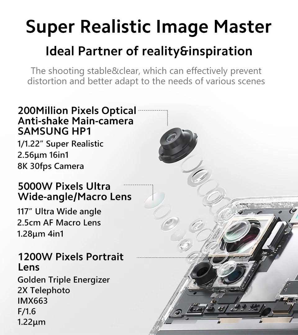 * Задняя камера: 200MP + 50MP + 12MP Тройная камера