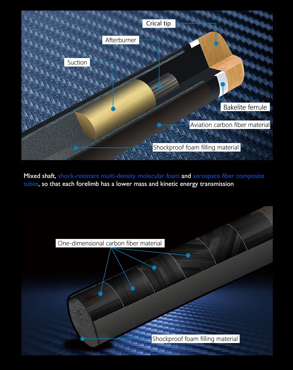 Изготовлен из авиационного класса материал из углеродного волокна, для того, чтобы обеспечить передачи энергии при ударе мяча; для того, чтобы достичь низкая отклонение удара чувство;