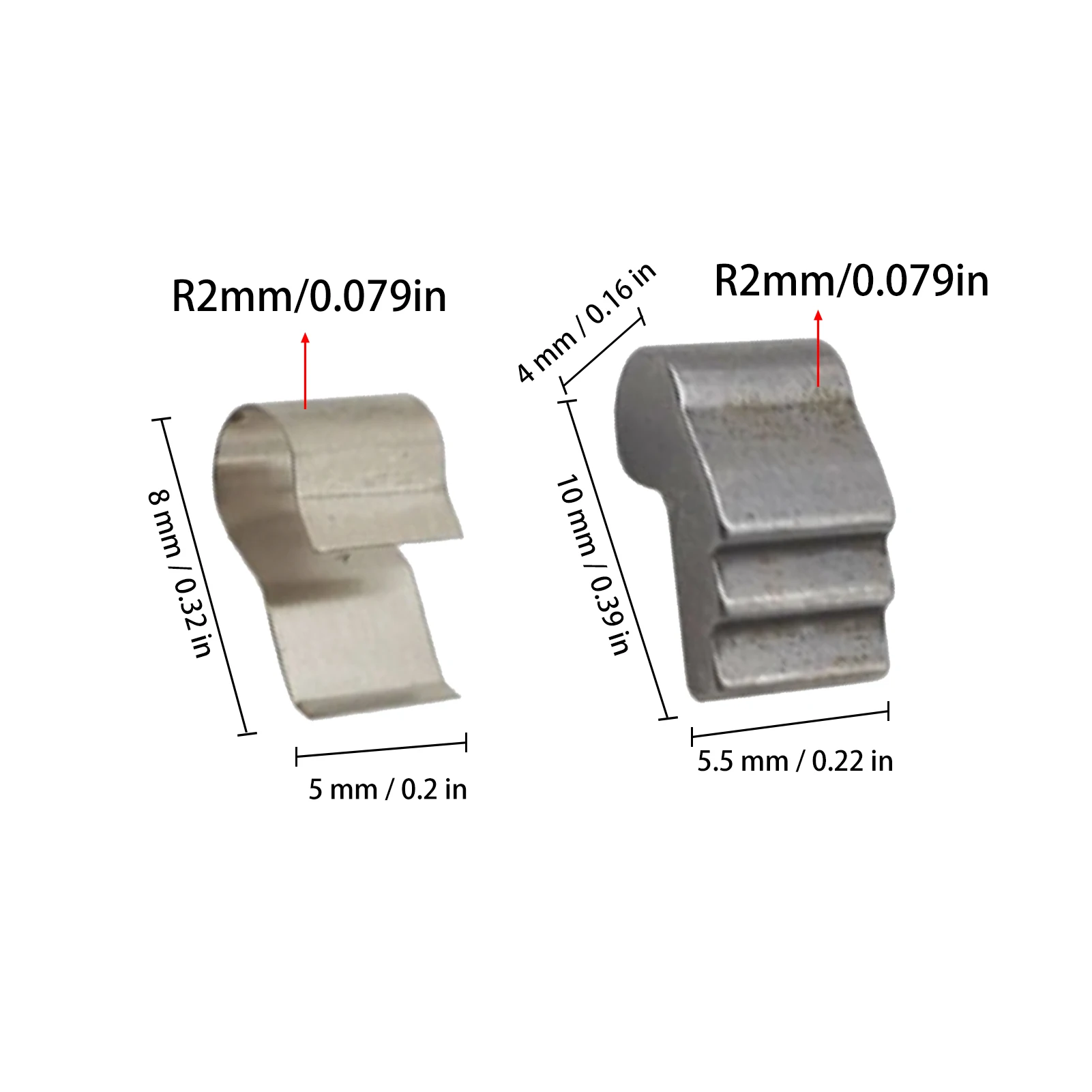 C: длина 8 мм/0,315 дюйма Ширина 5 мм/0,197 дюйма Радиус 2 мм/0,079 дюйма