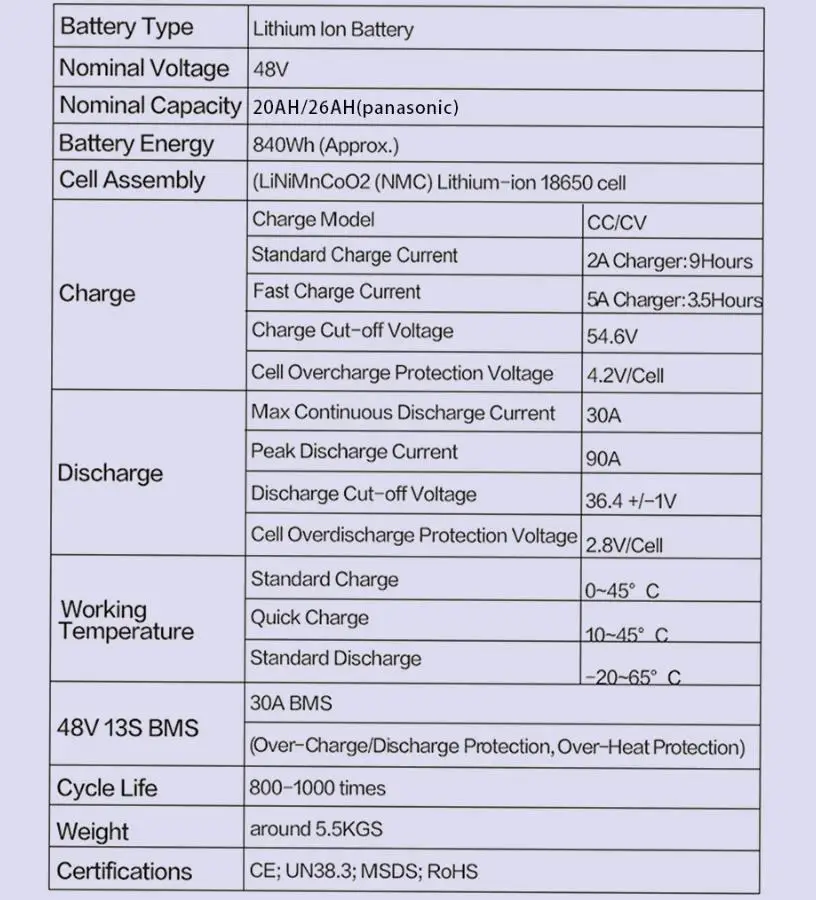 (2) 1*48V 20/26AH литиевая батарея с зарядным устройством