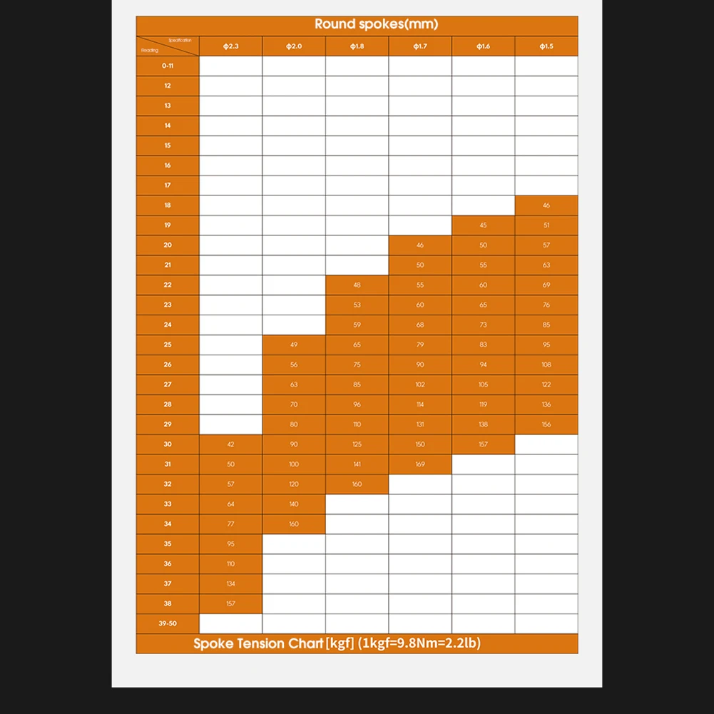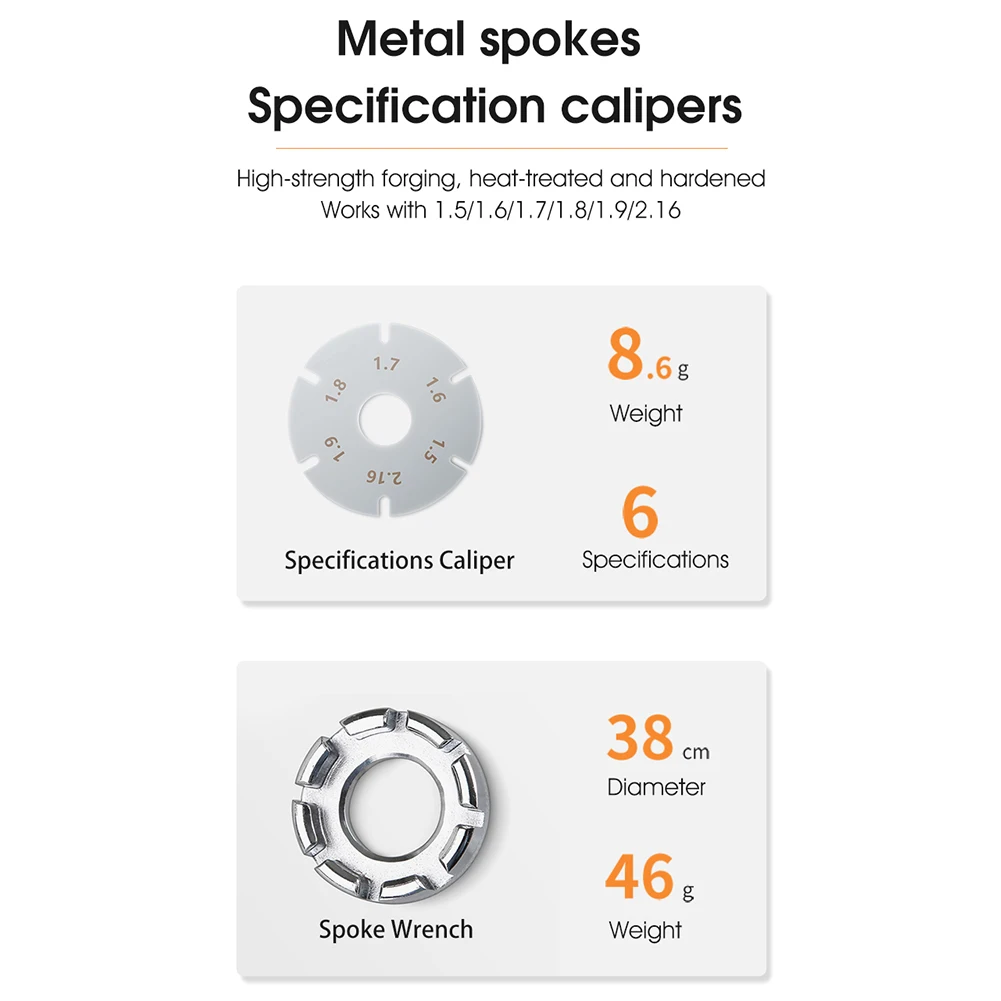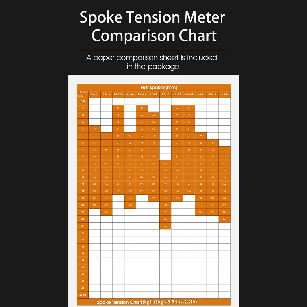 Функция: используется для измерения натяжения спиц, подходит для натяжения спиц круглых спиц, плоских спиц и различных комплектов колес.