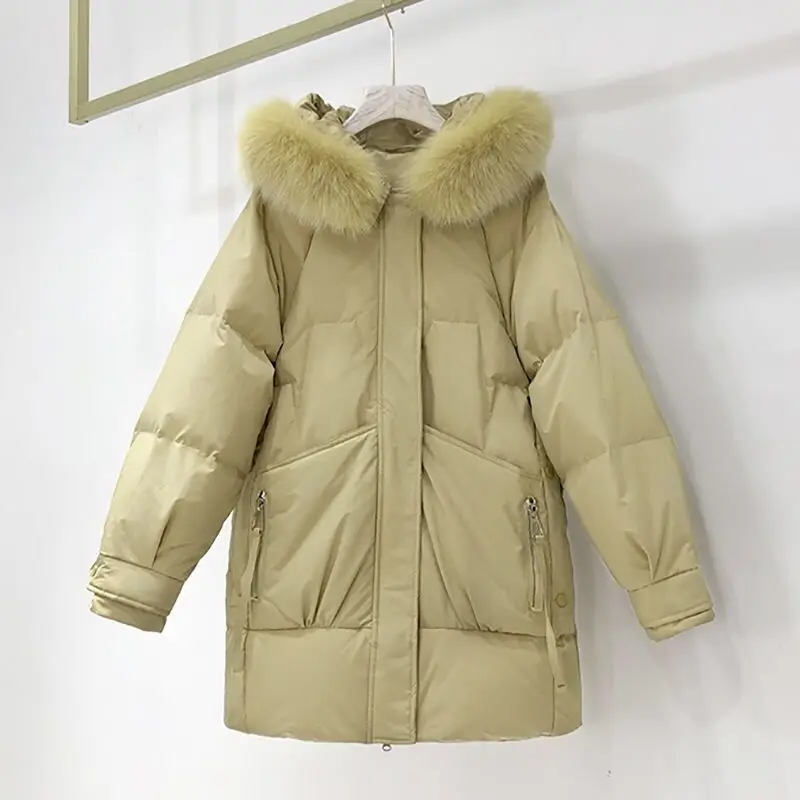 2022 зимняя куртка для женщин с капюшоном с искусственным меховым воротником, толстые теплые парки, модное хлопковое Стеганое пальто, женская зимняя одежда, верхняя одежда