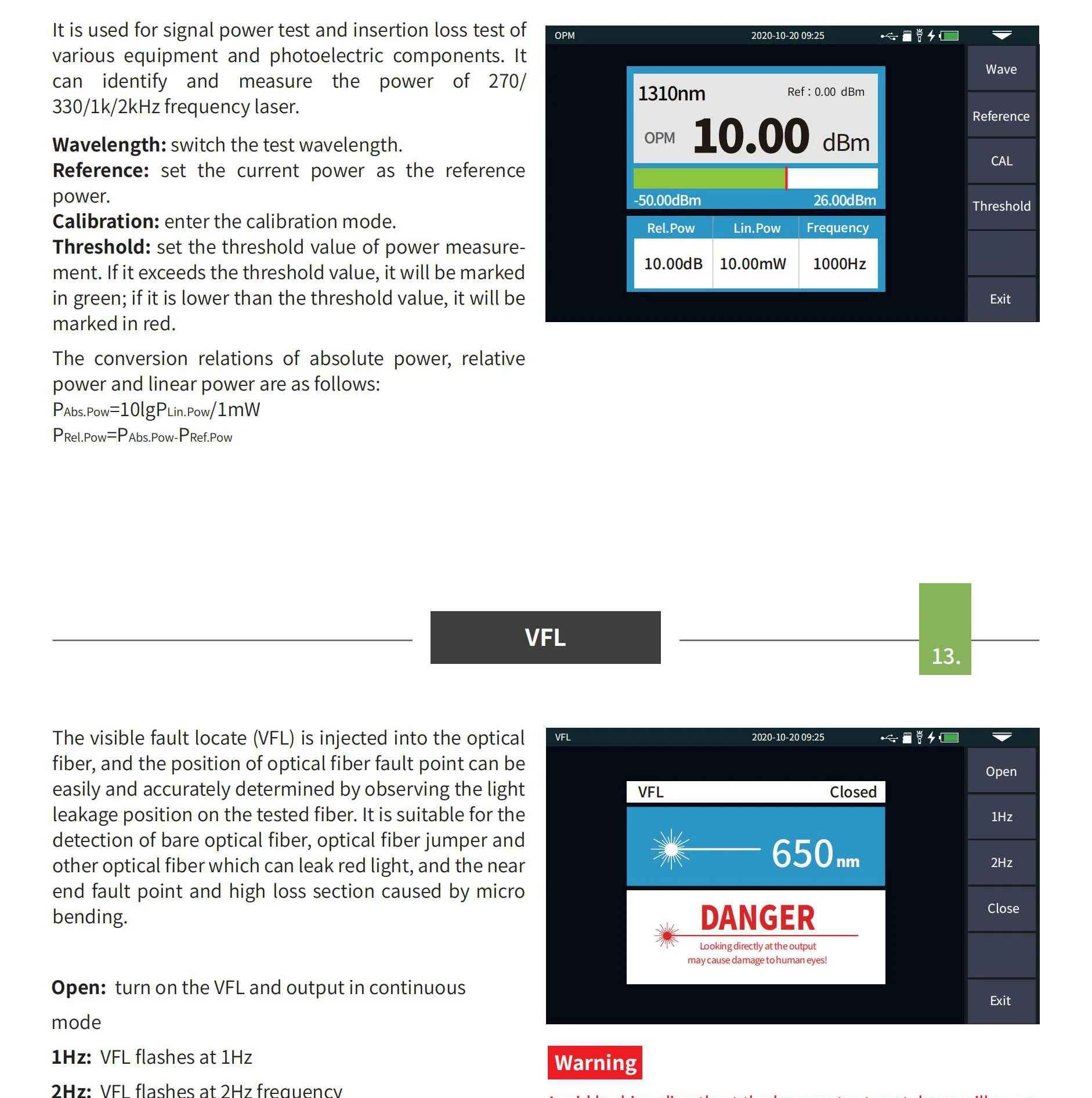 2) Объединяет все необходимые тесты оптоволокна в одном портативном устройстве с OPM, OLS, VFL и т. Д.