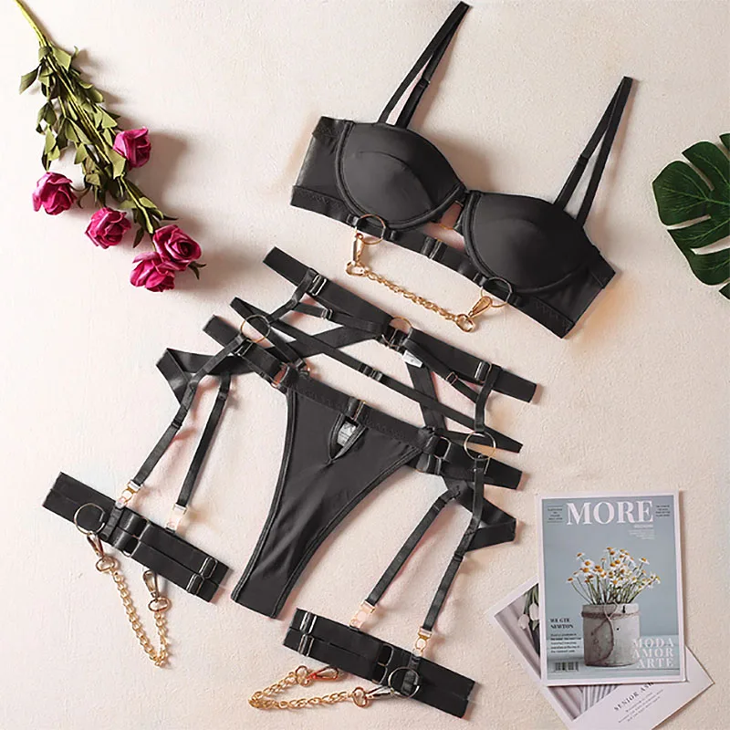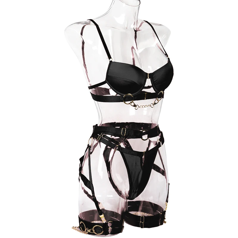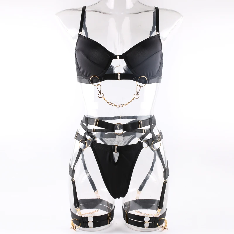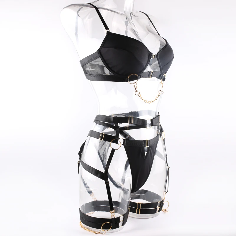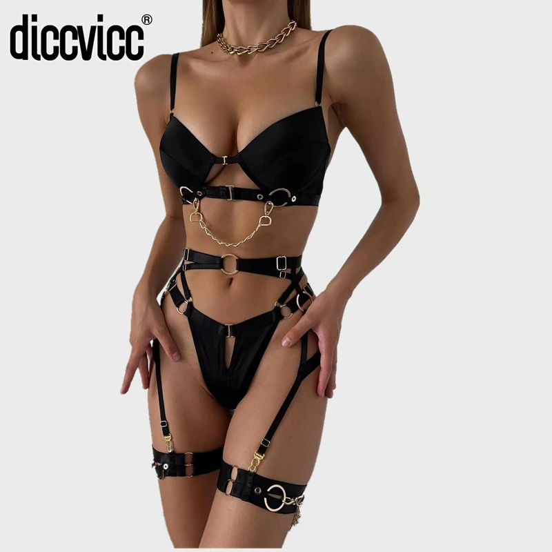Diccvicc женское чувственное нижнее белье, готический бюстгальтер, подвязки, необычные женские сексуальные трусы с цепочкой, Роскошные экзотические комплекты, эротический наряд