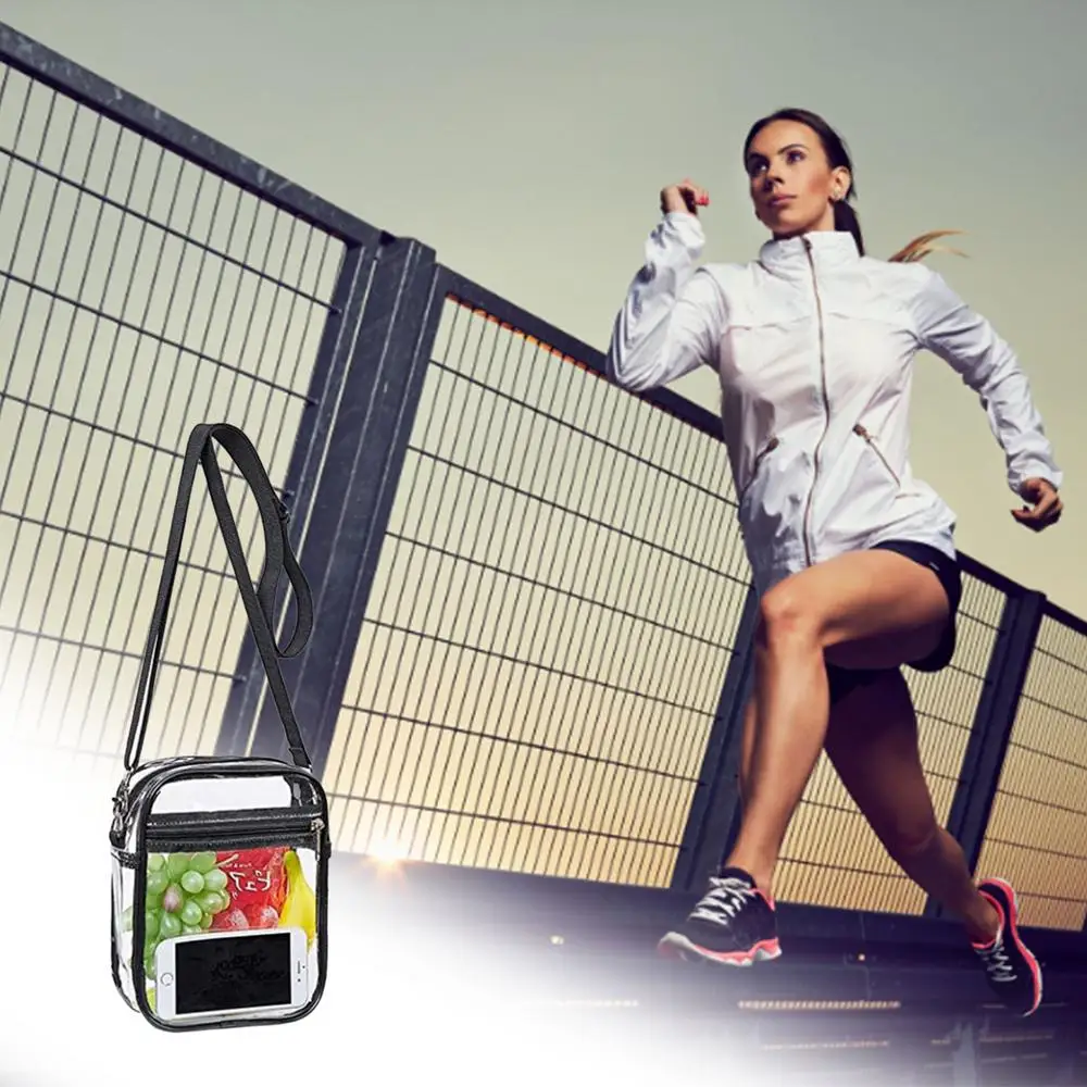 3. Прозрачные поверхности: прозрачная сумка идеально подходит для выхода на улицу, так как вы можете быстро найти важные предметы и проверить, не хватает ли чего-то, очень удобно при беге, путешествии или походе на концерт.