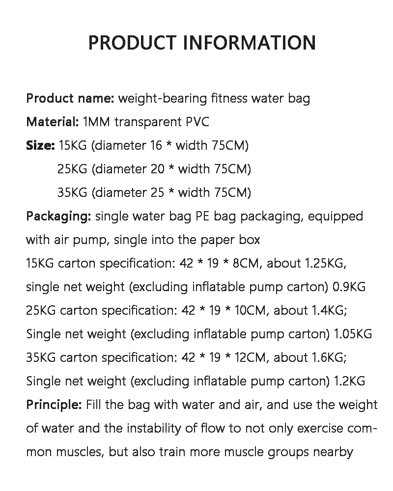 Принцип: Налейте мешок водой и воздухом, а также Используйте вес воды и нестабильность потока, чтобы не только тренировать общие мышцы, но и тренировать больше групп мышц рядом