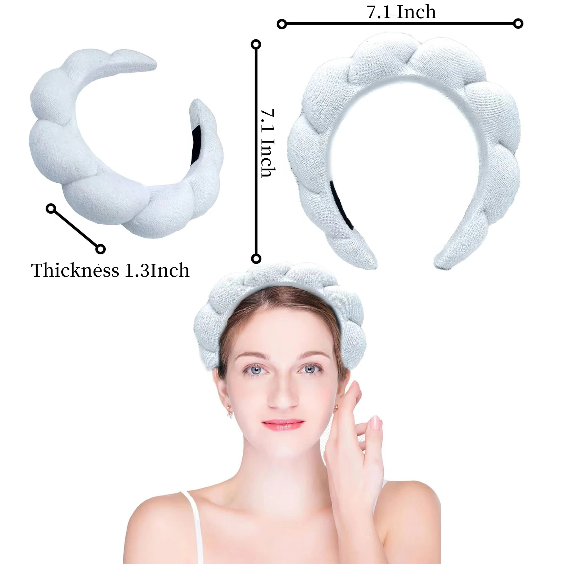 [Многофункциональная повязка] повязка на голову может использоваться в качестве повязки для макияжа, которая не выпадет и не даст вам идеальный макияж. Также можно использовать в качестве женской повязки для спа-салонов для мытья лица, снятия макияжа, спа-процедур или нанесения маски, И он может идеально расположить ваши волосы и легко зафиксировать их во время физических упражнений.
