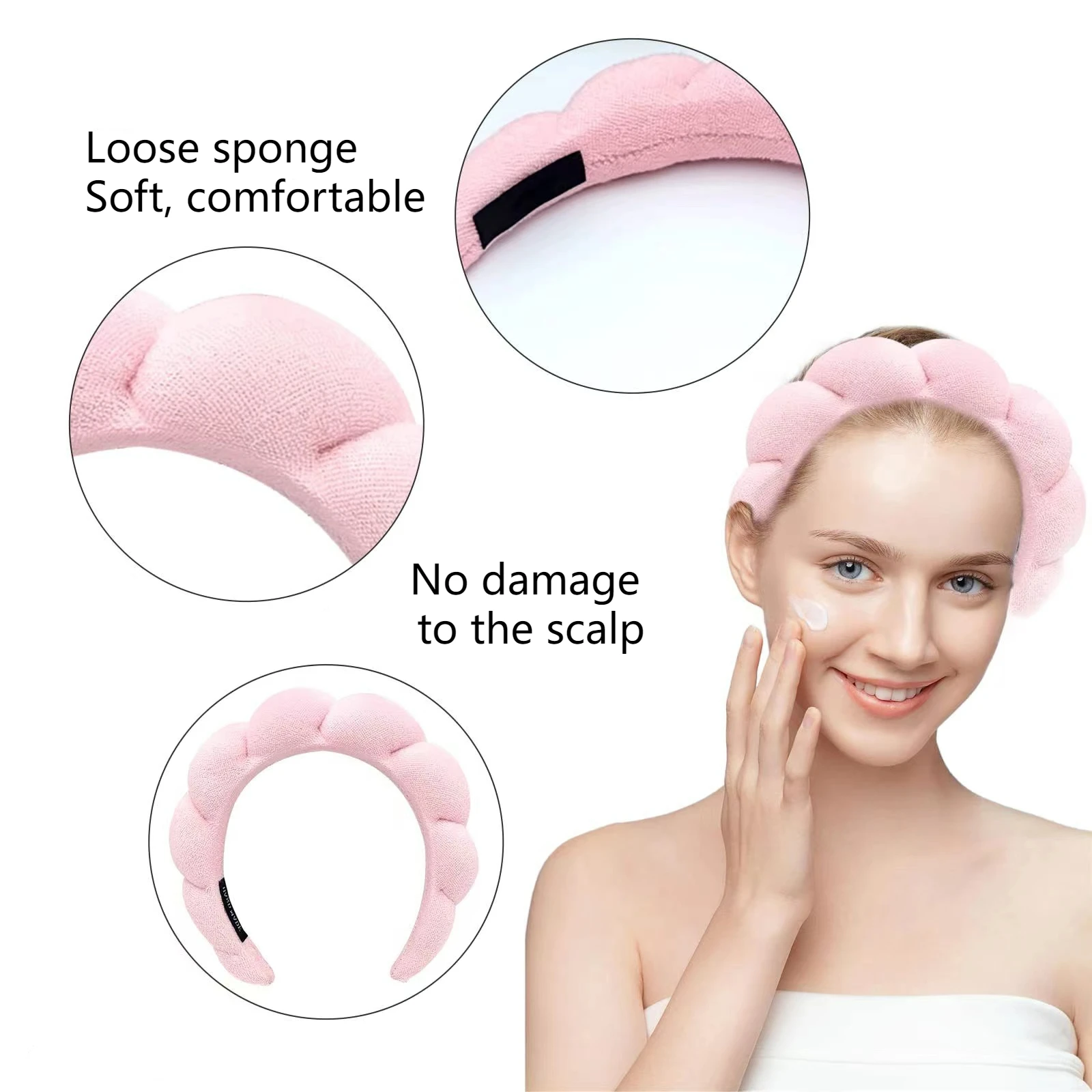 [Мягкий материал] Эта повязка на голову мягкая и удобная, используется подкладка из губки, поверхность покрыта махровой тканью, губчатая повязка на голову имеет сильную впитывающую способность, может использоваться при стирке, уходе за кожей, макияже, долго носить не будет неудобно.