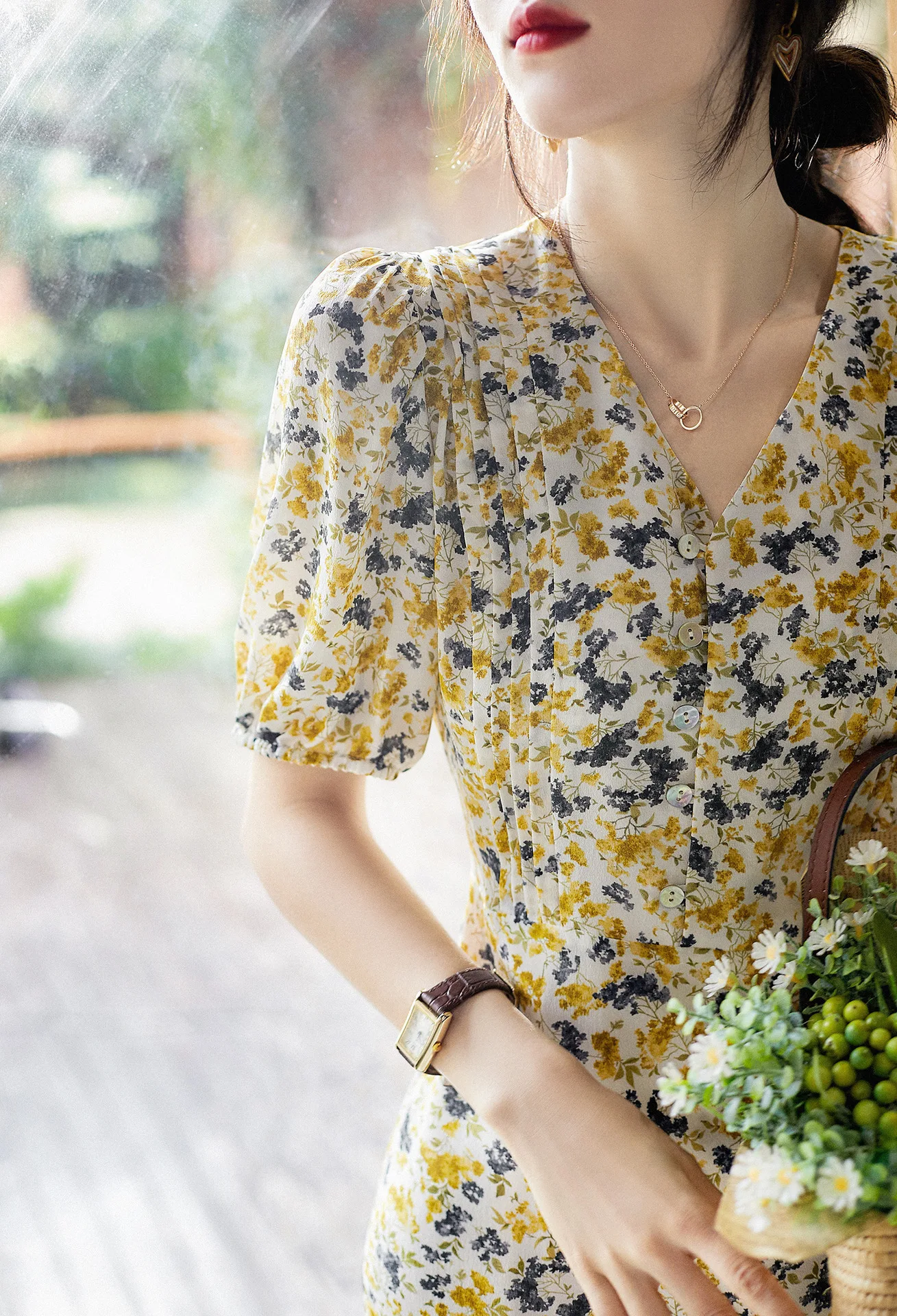 Новое модное популярное женское шифоновое платье с v-образным вырезом и короткими рукавами, приталенное Элегантное Длинное Платье с хвостом
