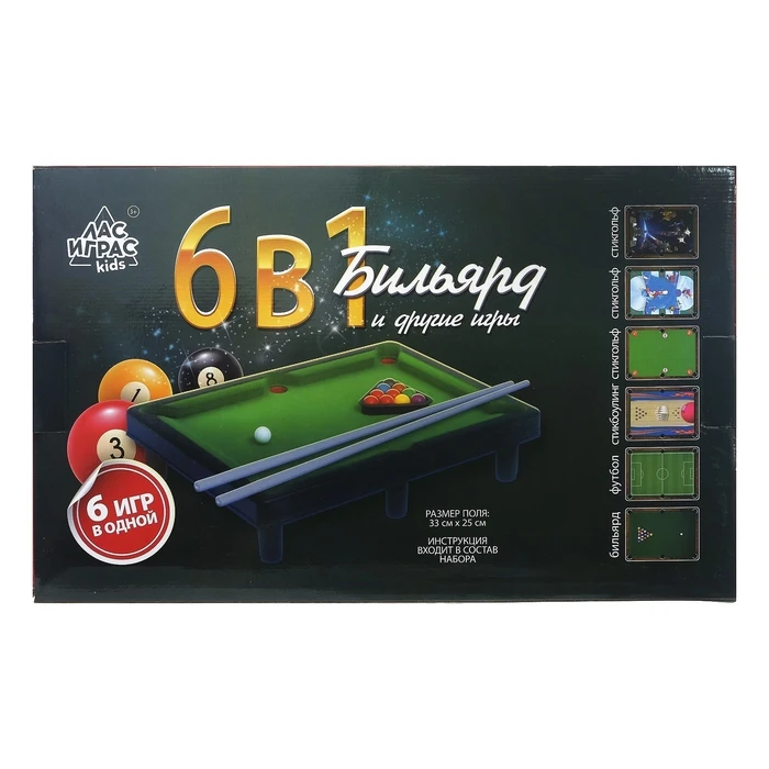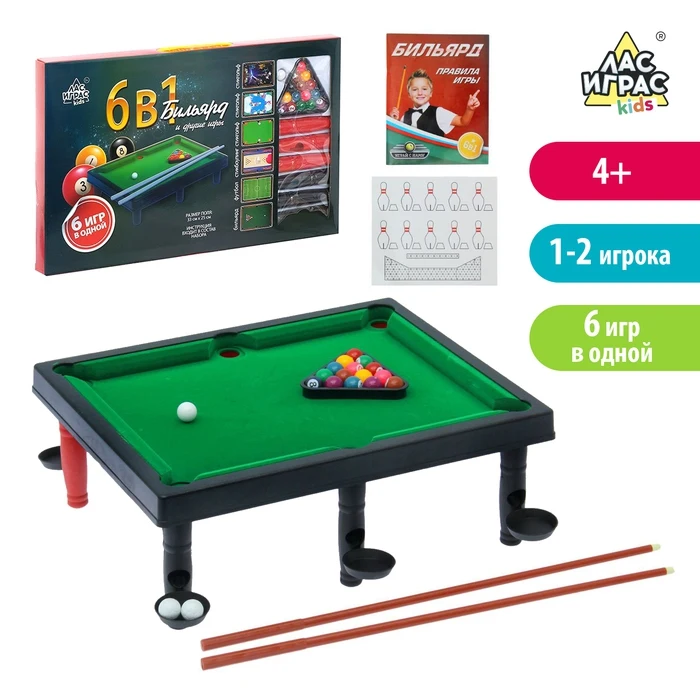 Настольный бильярд "6 в 1: бильярд, стикбол, стикбоулинг, стик гольф, фингербол"