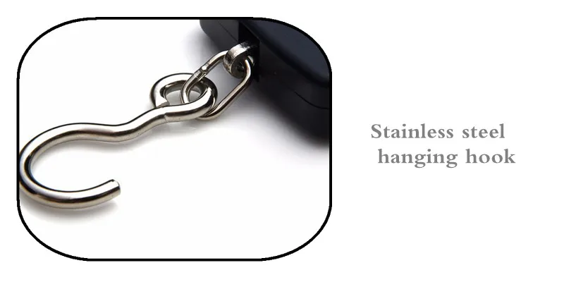 Портативные электронные весы с цифровым дисплеем Fish шкала подвесного крючка, вес 40 кг/88 фунтов, полезный инструмент для кухни, дорожного багажа Особенности: 1. Светодиодный экран 2. Размер: 85*50*21 мм 3. Вес нетто: 65 г 4. Цвет: черный 5. Максимальный вес: 40 кг/88 фунтов/1410 унций 6. Три единицы выбора переключателя веса: кг/фунт/унция 7. Точность: 10-40 кг 10 г/0,35 фунта/унции; 20 г-10 кг 5g/0,175 фунта/унции 8. Источник питания: 2 батарейки AAA 1,5 В (батарейки в комплект не входят) 9. Автоматическая фиксация показаний при стабильных данных 10. Основной материал (основной корпус): инженерный АБС-пластик 11. Подвесной крючок из нержавеющей стали Посылка входит: 1 × цифровые весы (батарейки в комплект не входят)